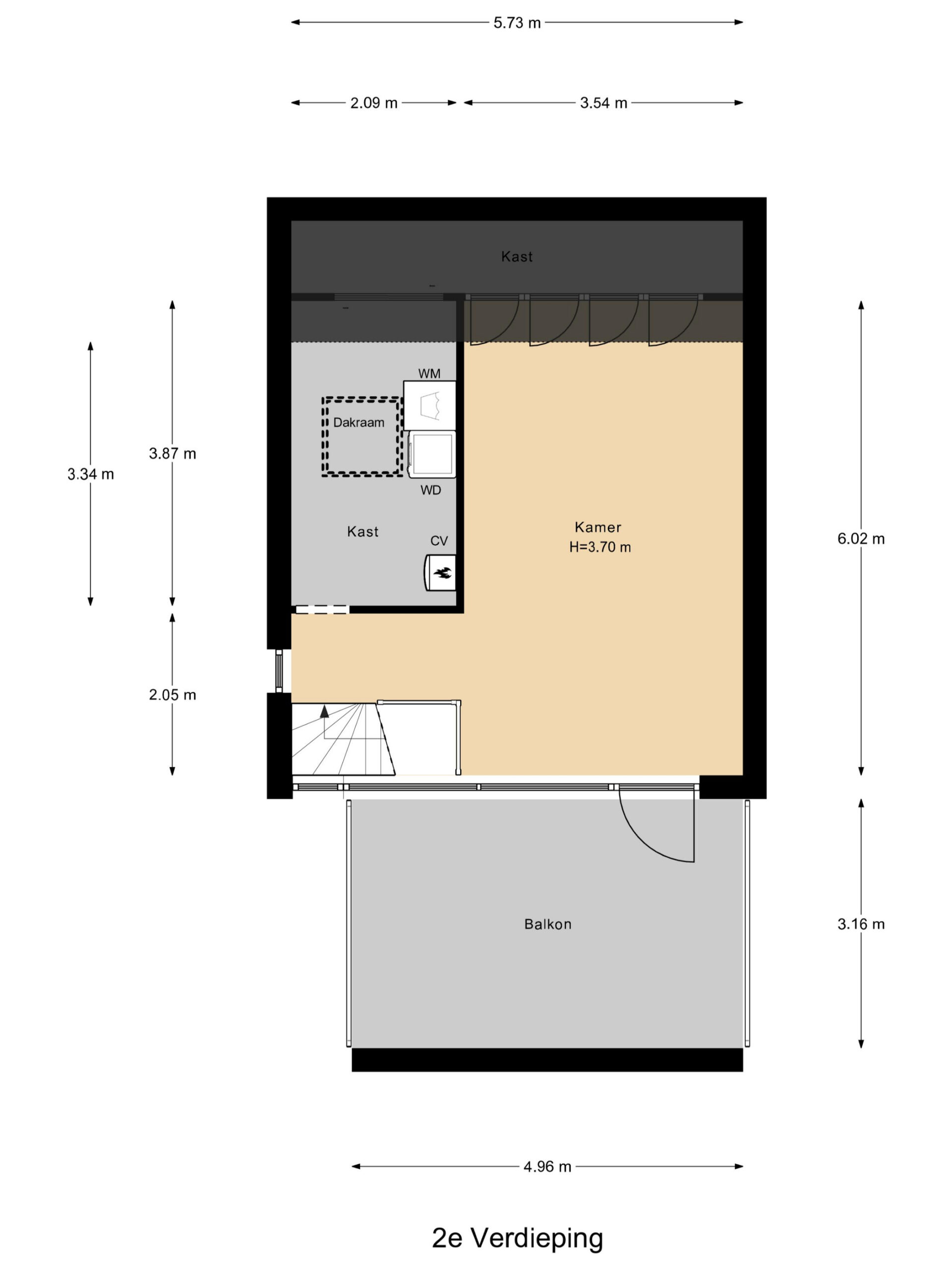 Via een vaste trap is de tweede verdieping bereikbaar. Hier bevindt zich een ruime vierde slaapkamer met een grote raampartij, wat zorgt voor veel natuurlijke lichtinval. Achter de knieschotten is extra bergruimte gecreëerd. Op deze verdieping bevinden zich tevens de opstelplaats van de cv-ketel (2010) en de aansluitingen voor de wasmachine en droger. Vanuit de slaapkamer is toegang tot het balkon aan de noordwestzijde, waar je in de namiddag en avond van de zon kunt genieten.