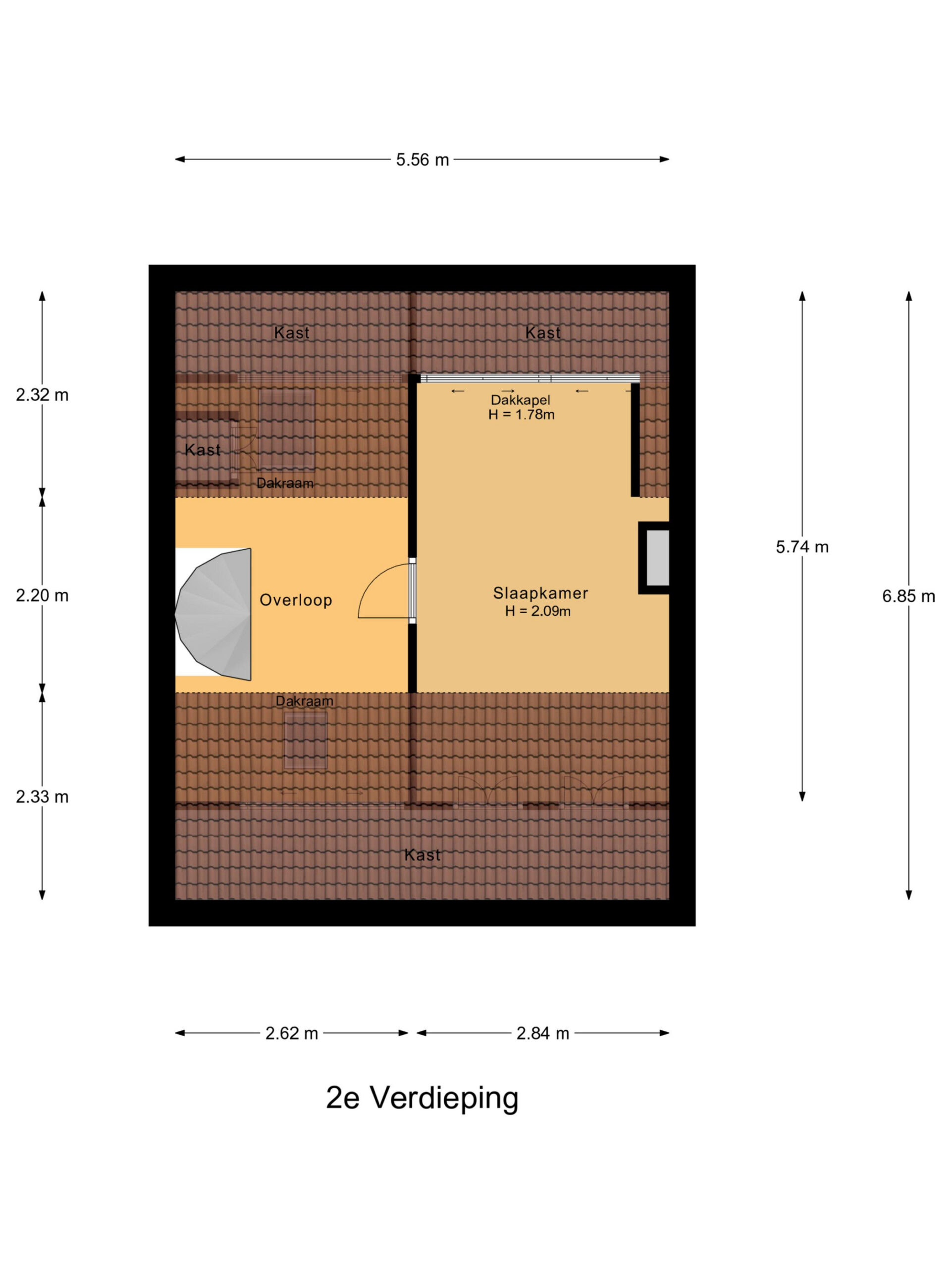 Via een vaste wenteltrap bereikt u de tweede verdieping. Hier bevindt zich een derde slaapkamer met daglichttoetreding en praktische bergruimte achter de knieschotten. Op de overloop is er extra bergruimte aanwezig.