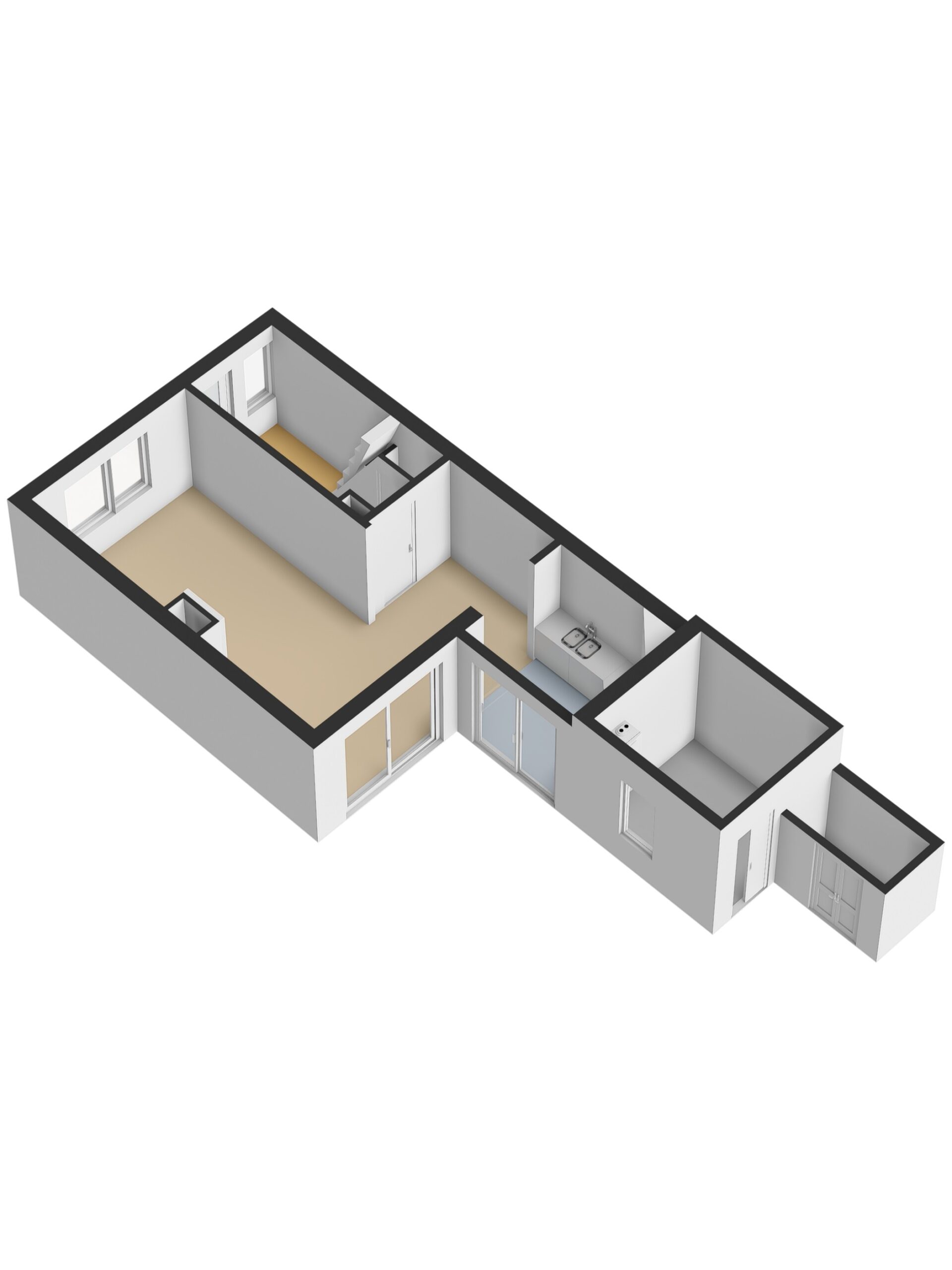 Aan de achterzijde is de woning uitgebouwd, waar zich de keuken bevindt. De keuken is uitgevoerd in een praktische L-opstelling en beschikt over diverse kastruimte. Vanuit de keuken is er direct toegang tot de achtertuin, evenals via de schuifpui in de woonkamer.