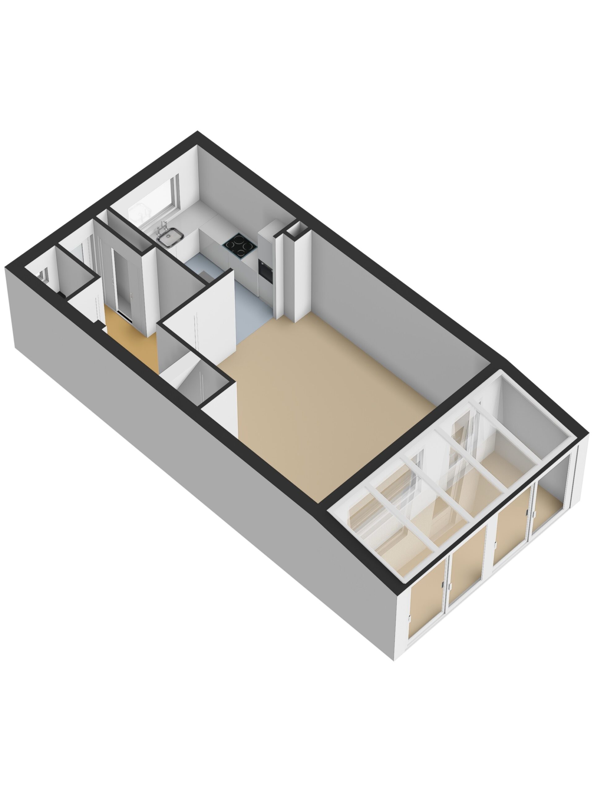 De woonkamer bevindt zich aan de achterzijde van de woning en kijkt uit op de tuin. De gehele begane grond is voorzien van vloerverwarming, wat zorgt voor een aangenaam wooncomfort. Aansluitend is de serre gelegen, voorzien van schuifpui en radiatoren, waardoor deze ruimte het hele jaar door gebruikt kan worden. Dankzij de grote raampartijen is er volop daglicht, en vormt de serre een prettige verlenging van de leefruimte.