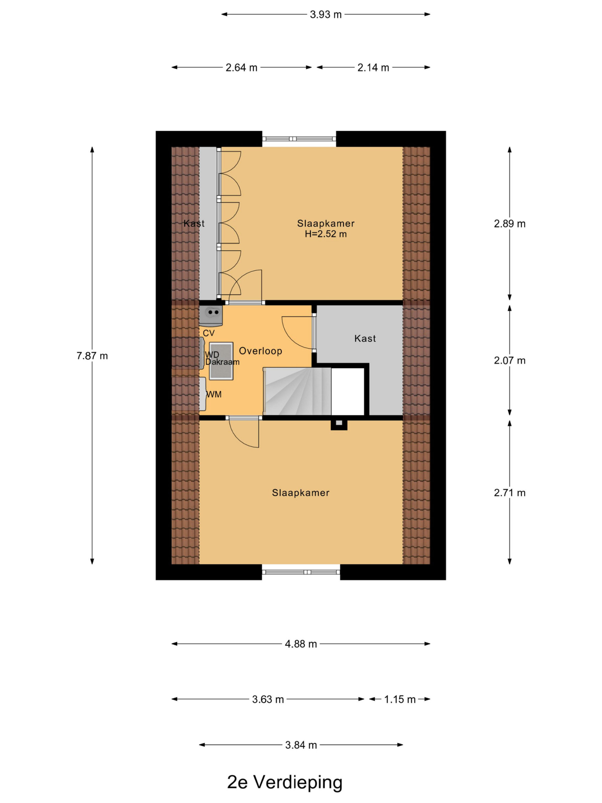 Op de bovenste etage zijn nog twee slaapkamers te vinden, beide voorzien van veel daglicht. Op deze verdieping bevindt zich de opstelplaats voor de wasmachine en cv-ketel (Remeha Avanta, 2010). Er is tevens extra bergruimte en er bevindt zich een vaste kast.