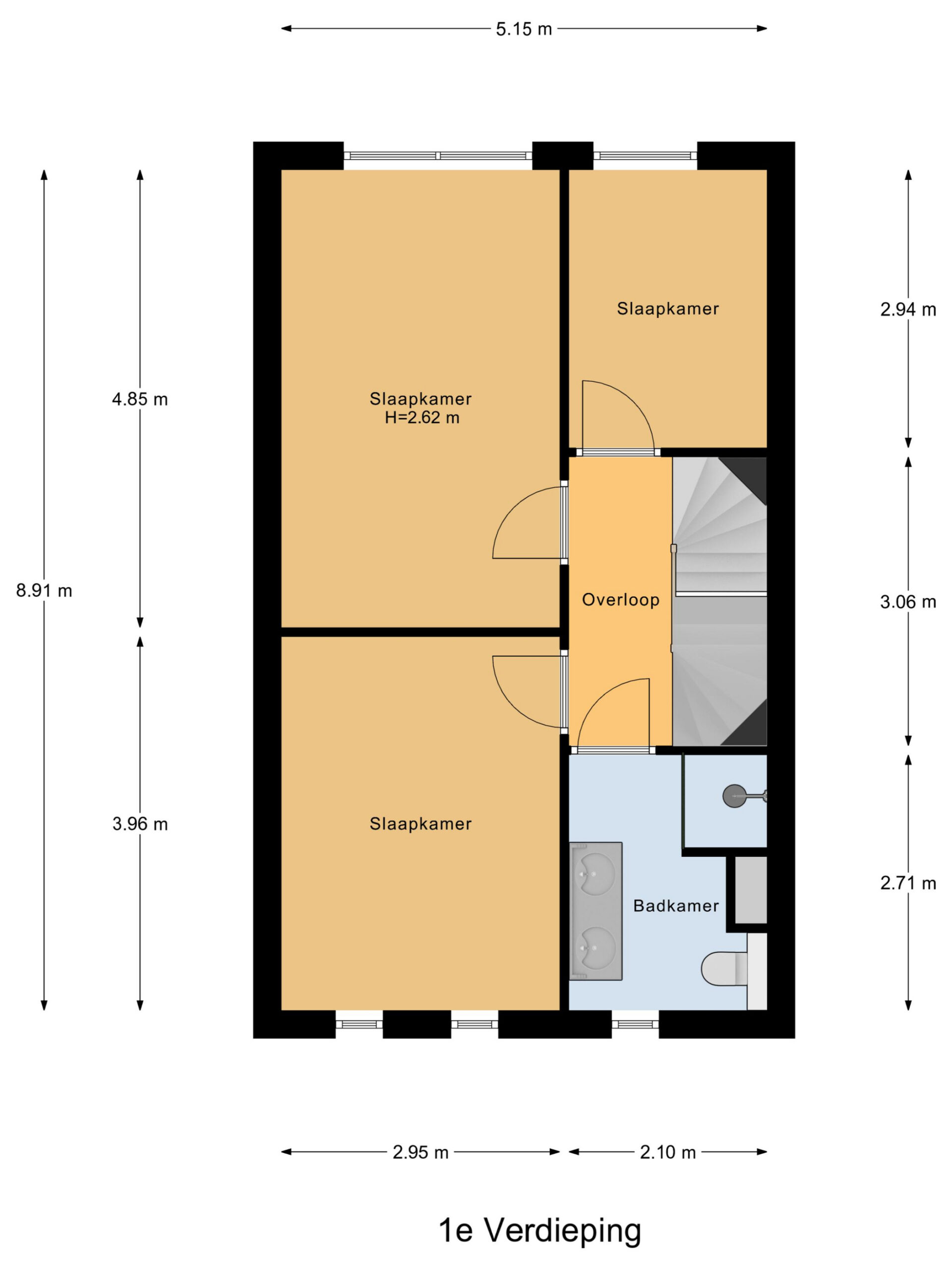 De eerste verdieping telt drie prettige slaapkamers, allemaal licht afgewerkt en voorzien van kunststof kozijnen met HR++ glas. De moderne badkamer is stijlvol ingericht met een ruime inloopdouche, dubbele wastafel met meubel en een tweede toilet.