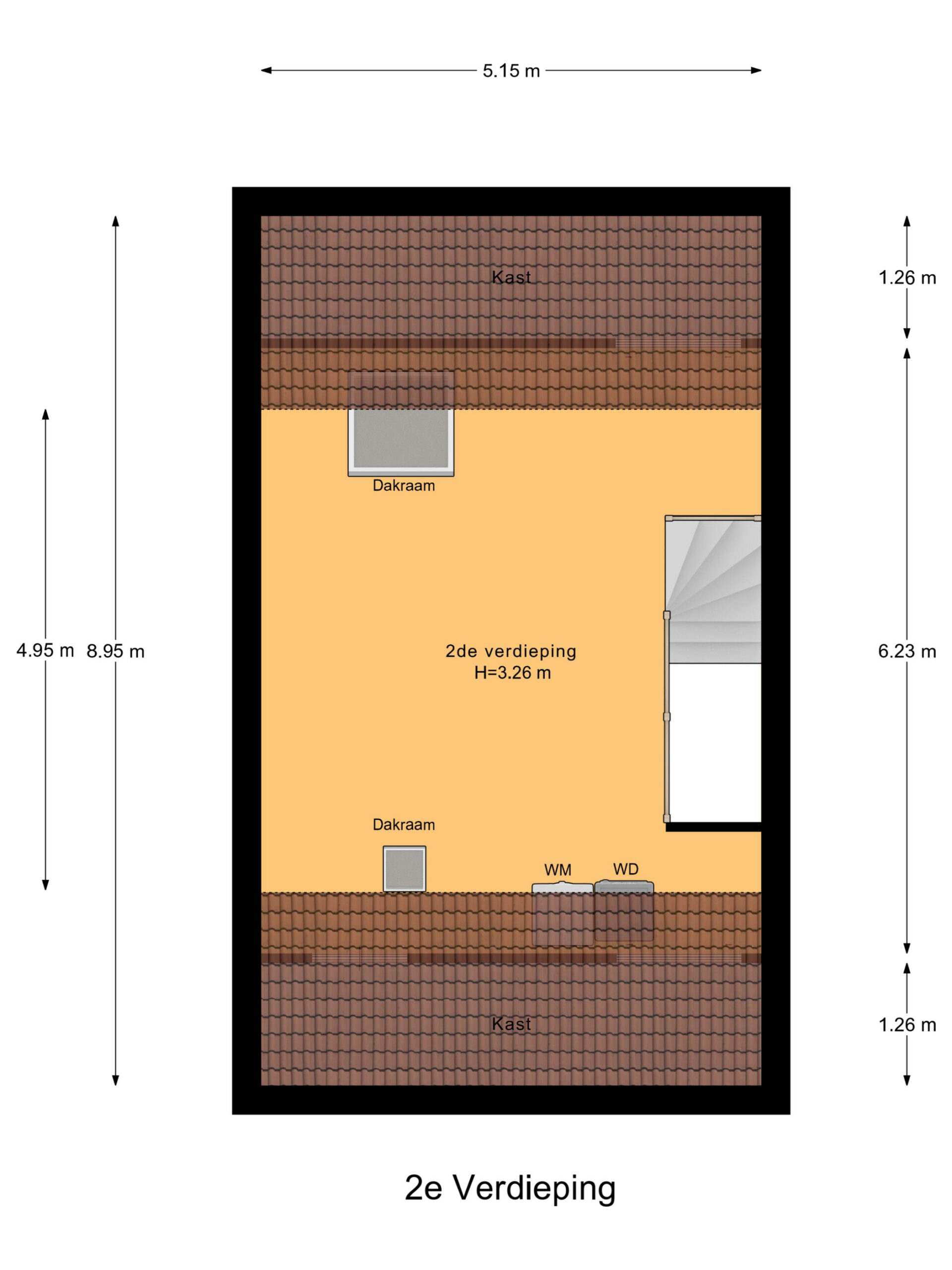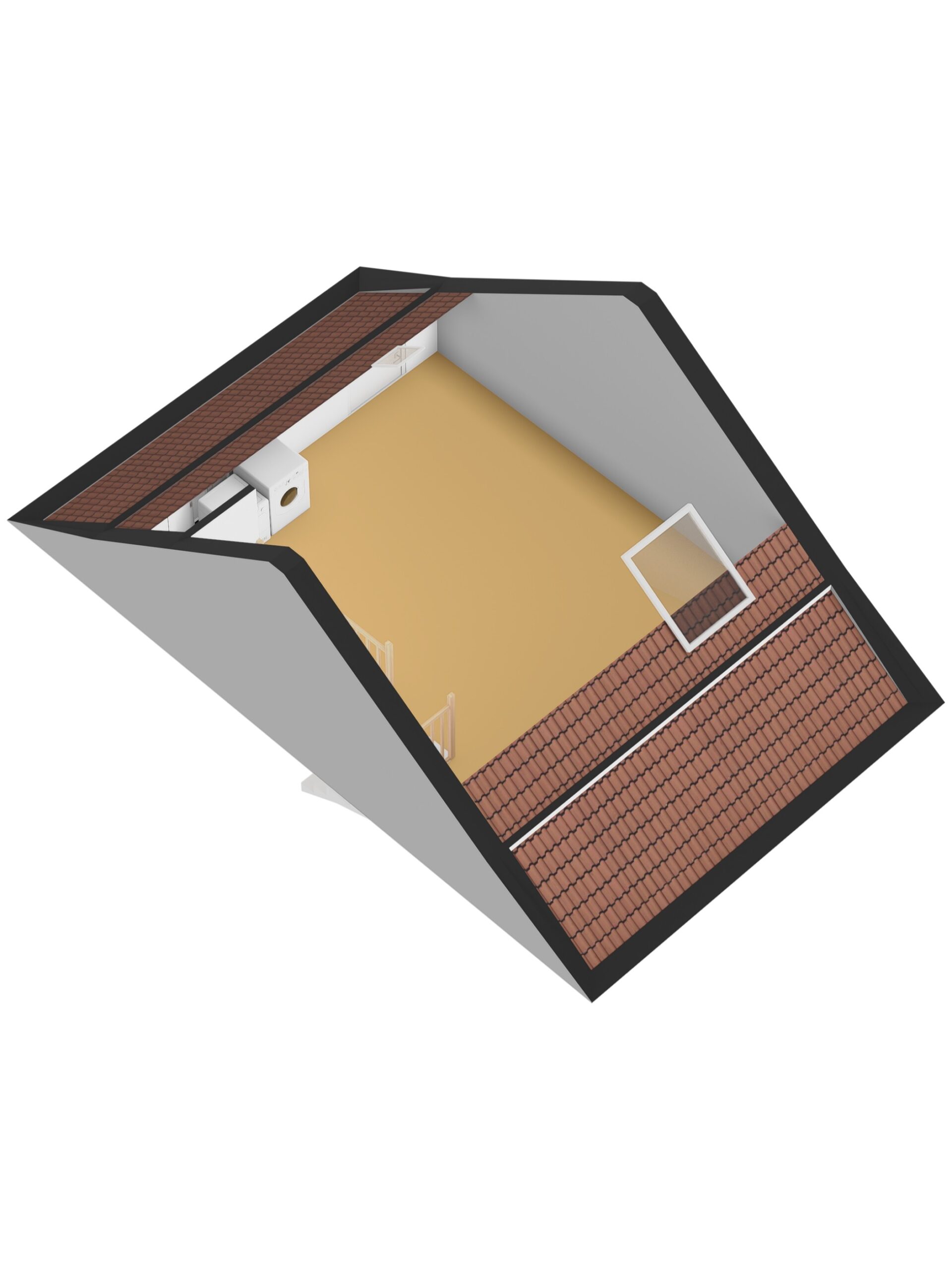 De tweede verdieping is verrassend ruim en dankzij twee dakramen heerlijk licht. Perfect als werkruimte, hobbykamer of extra slaapkamer. ook vind je hier de aansluitingen voor wasmachine en droger en bergruimte achter de knieschotten.