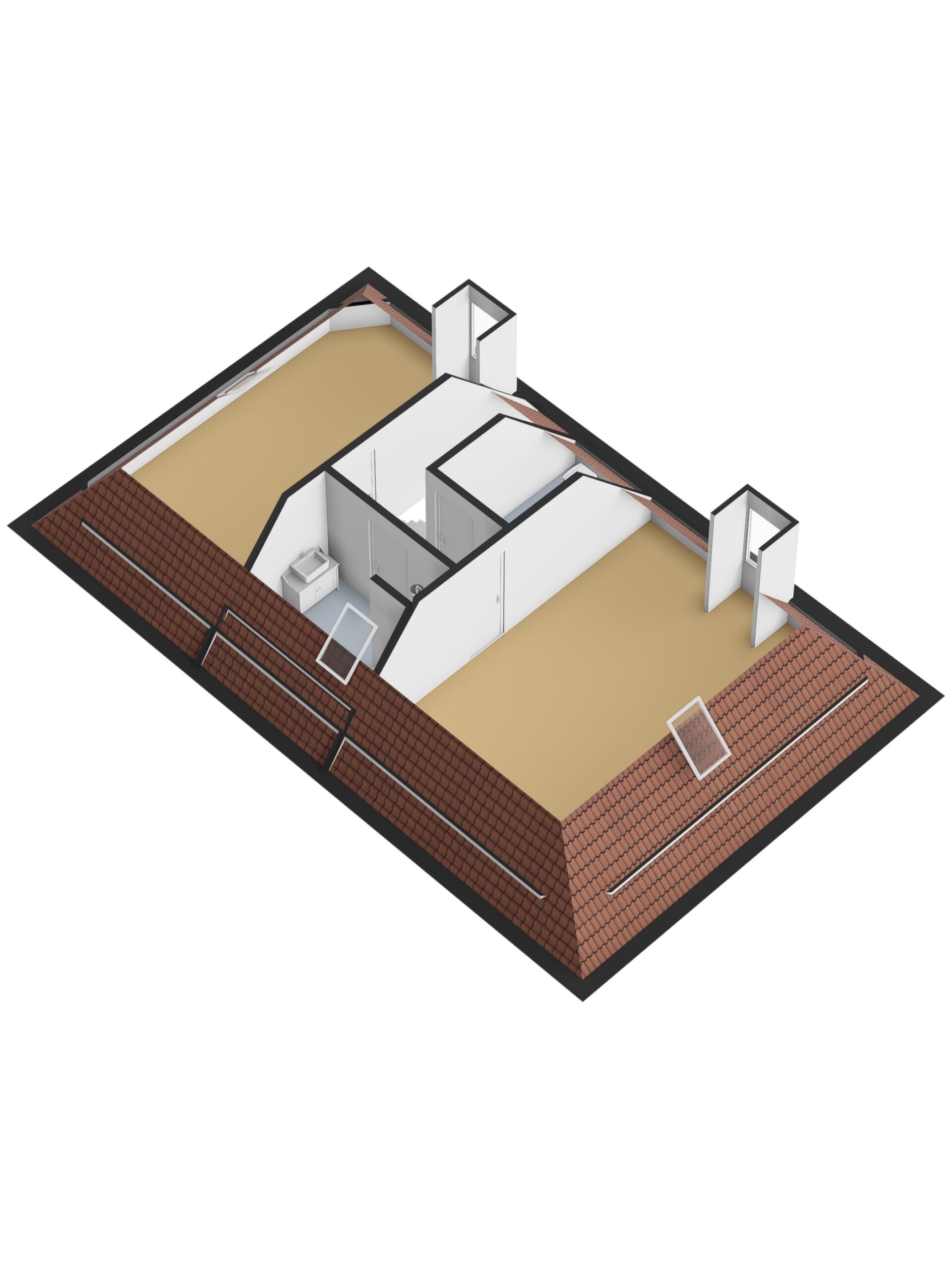 Via de vaste trap bereikt u de tweede verdieping, waar de overloop toegang biedt tot twee ruime slaapkamers, een derde badkamer en een separate wasruimte. De slaapkamers op deze verdieping zijn opvallend ruim en dankzij de aanwezige dakramen en raampartijen aangenaam licht. Ook hier zijn de kamers voorzien van airconditioning. De grote slaapkamer op deze verdieping biedt de mogelijkheid om eenvoudig te splitsen, waarmee een zesde slaapkamer gerealiseerd kan worden. De derde badkamer is luxe uitgevoerd en beschikt over een douche, toilet en wastafelmeubel.