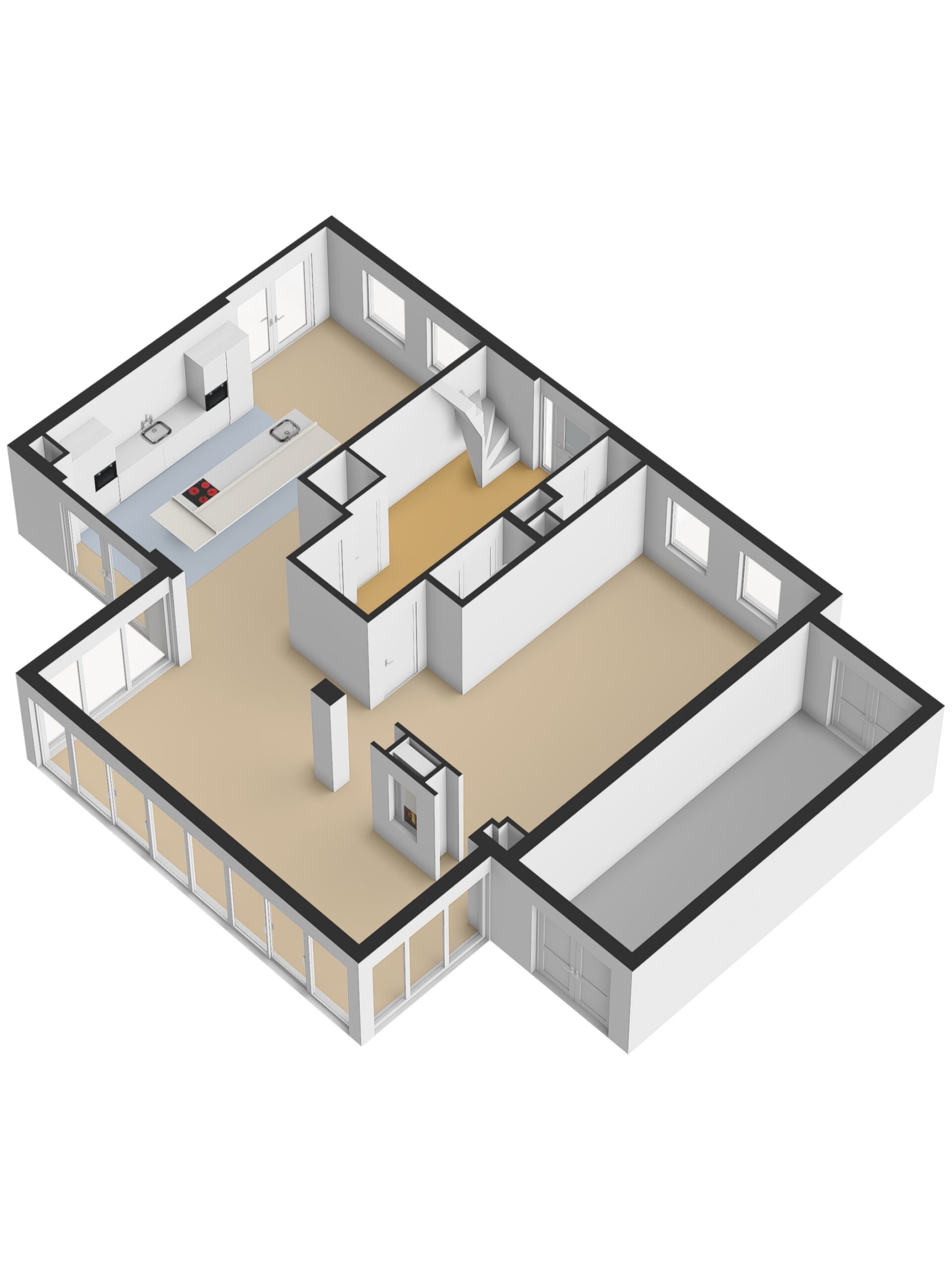 – PVC visgraatvloer met vloerverwarming door de gehele woning.