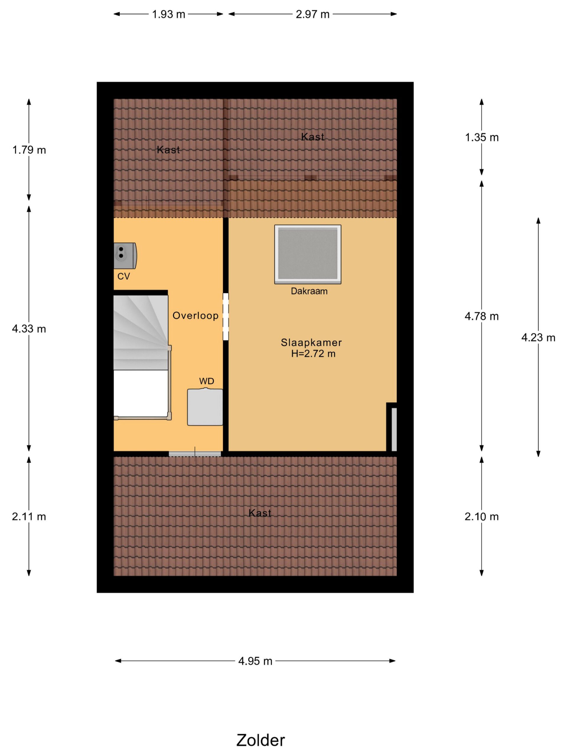 De overloop biedt plaats aan de cv-installatie (2023), een airco (2024)en de omvormer van de zonnepanelen. Op deze verdieping bevindt zich tevens de vierde, volwaardige slaapkamer. Deze kamer is ruim opgezet, voorzien van een dakraam en beschikt over praktische bergruimte achter de knieschotten.