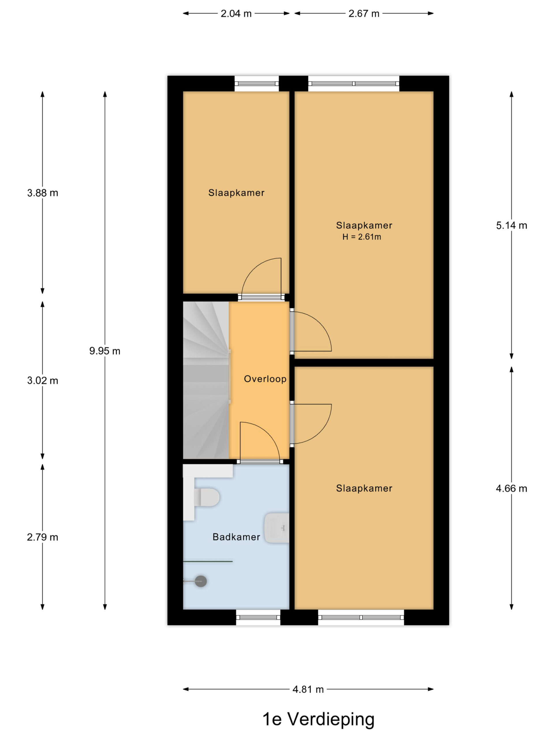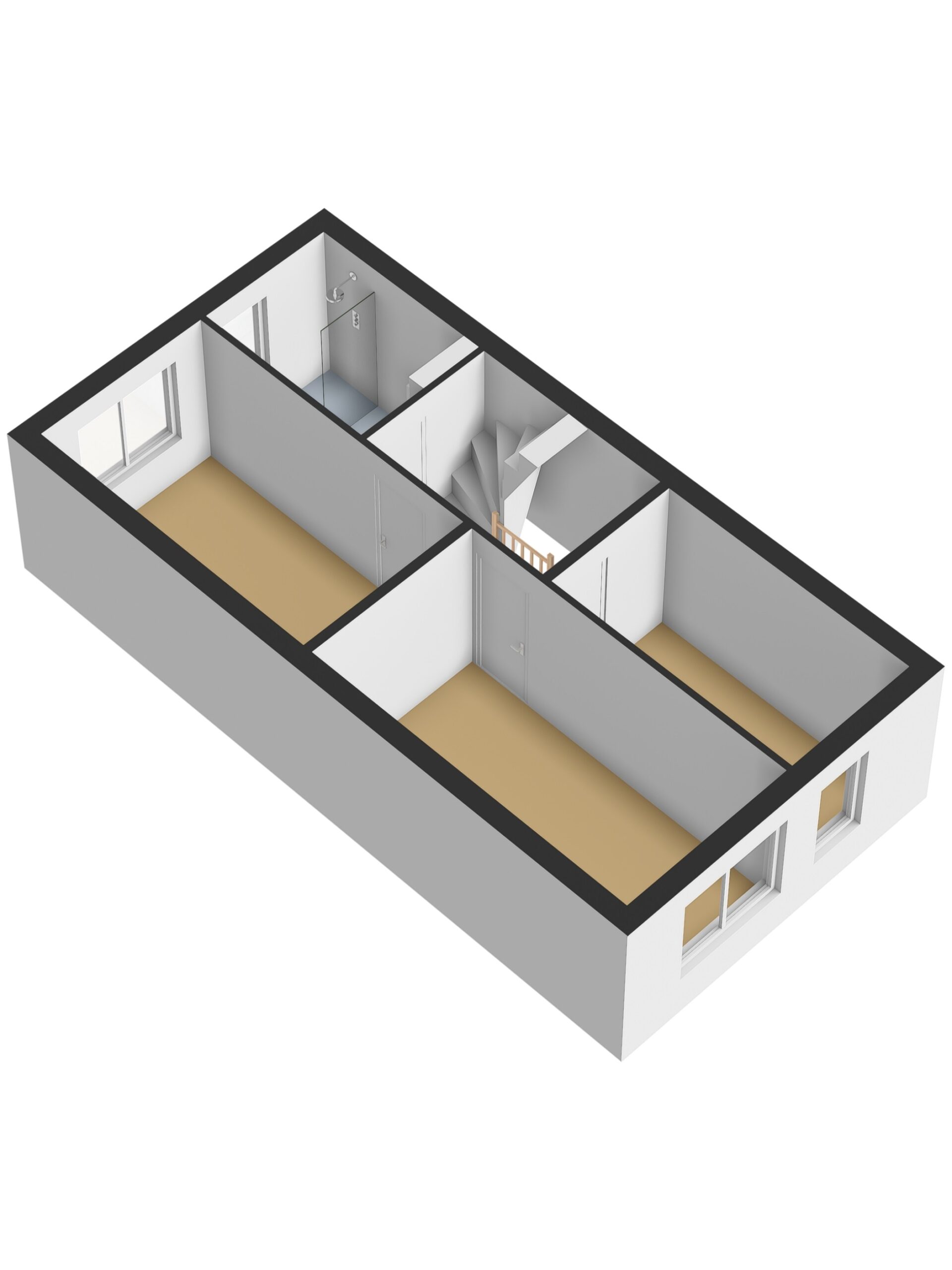 Vanaf de overloop zijn drie ruime slaapkamers bereikbaar, elk met grote raampartijen en een nette pvc-vloer. De modern afgewerkte badkamer is uitgerust met een inloopdouche, wastafel en tweede toilet. Ook deze verdieping beschikt over comfortabele vloerverwarming en -koeling