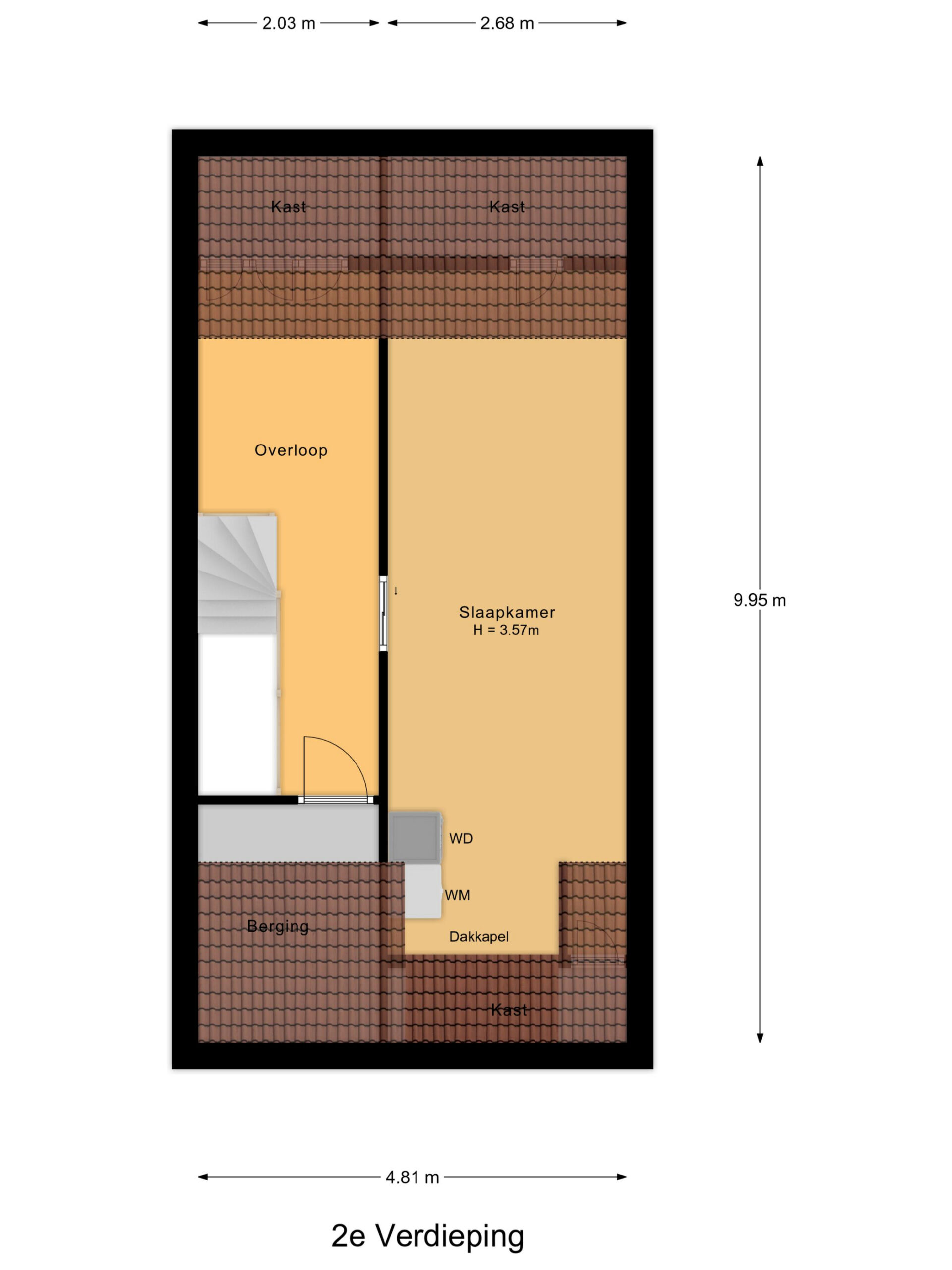 Via een vaste trap bereik je de volwaardige tweede verdieping. Hier bevindt zich een ruime vierde slaapkamer met dakkapel en praktische bergruimte achter de knieschotten. De verdieping is afgewerkt met een klik pvc-vloer voorzien van comfortabele vloerverwarming en -koeling. Daarnaast is er een aparte technische ruimte met de installaties: een warmtepomp met bodemwarmtebron (Itho Daalderop WPU 5G) die de gehele woning duurzaam verwarmt en koelt, en een WTW-systeem dat zorgt voor energiezuinige ventilatie.