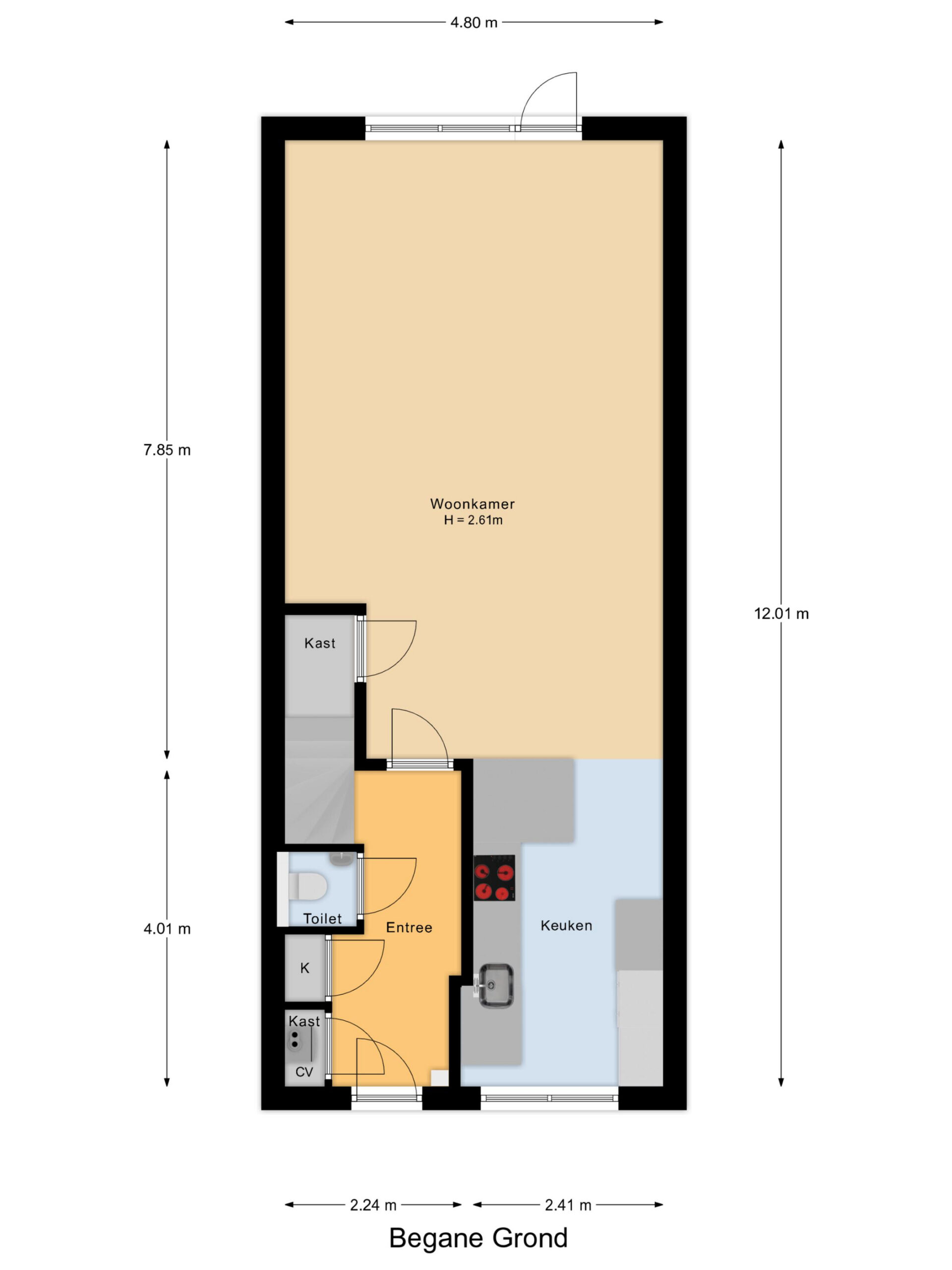 Via de verzorgde voortuin kom je binnen in de entree met het moderne toilet, de meterkast, garderobe en trapopgang. De tuingerichte woonkamer is ruim, licht en strak afgewerkt. Over de gehele begane grond ligt een stijlvolle visgraat pvc-vloer met vloerverwarming én -koeling voor optimaal wooncomfort. Aan de voorzijde bevindt zich de open keuken in luxe opstelling (2023), uitgerust met inbouwapparatuur zoals een inductiekookplaat, oven, koelkast, vaatwasser en een kokendwaterkraan van ACE.