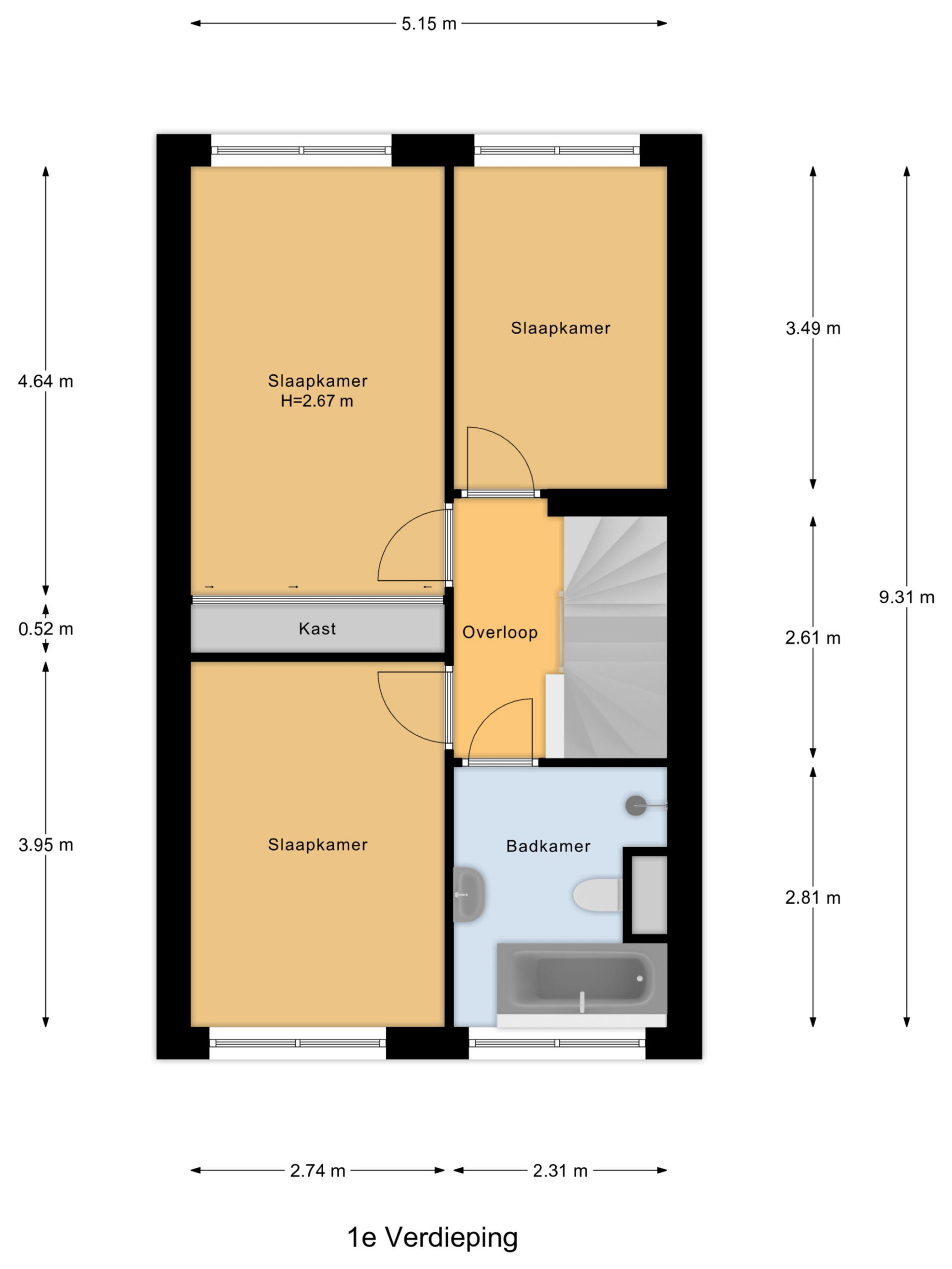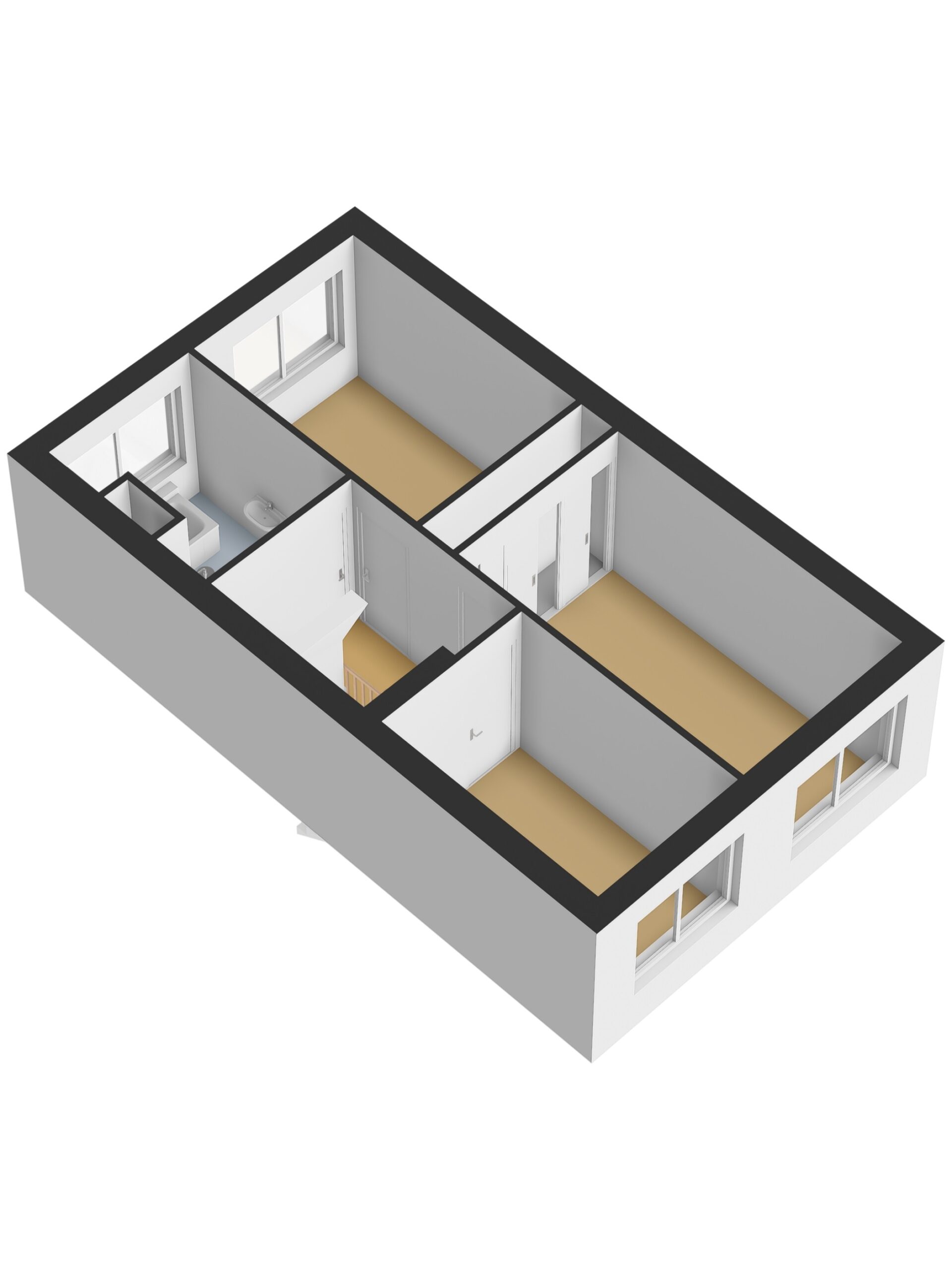 De overloop geeft toegang tot drie slaapkamers. De hoofdslaapkamer is aan de achterzijde van de woning gesitueerd en beschikt over een vaste kastenwand. Daarnaast bevindt zich aan de achterzijde nog een tweede slaapkamer. De derde slaapkamer ligt aan de voorzijde van de woning en is eveneens prettig van formaat. Alle kamers zijn afgewerkt met een gietvloer en voorzien van vloerverwarming.