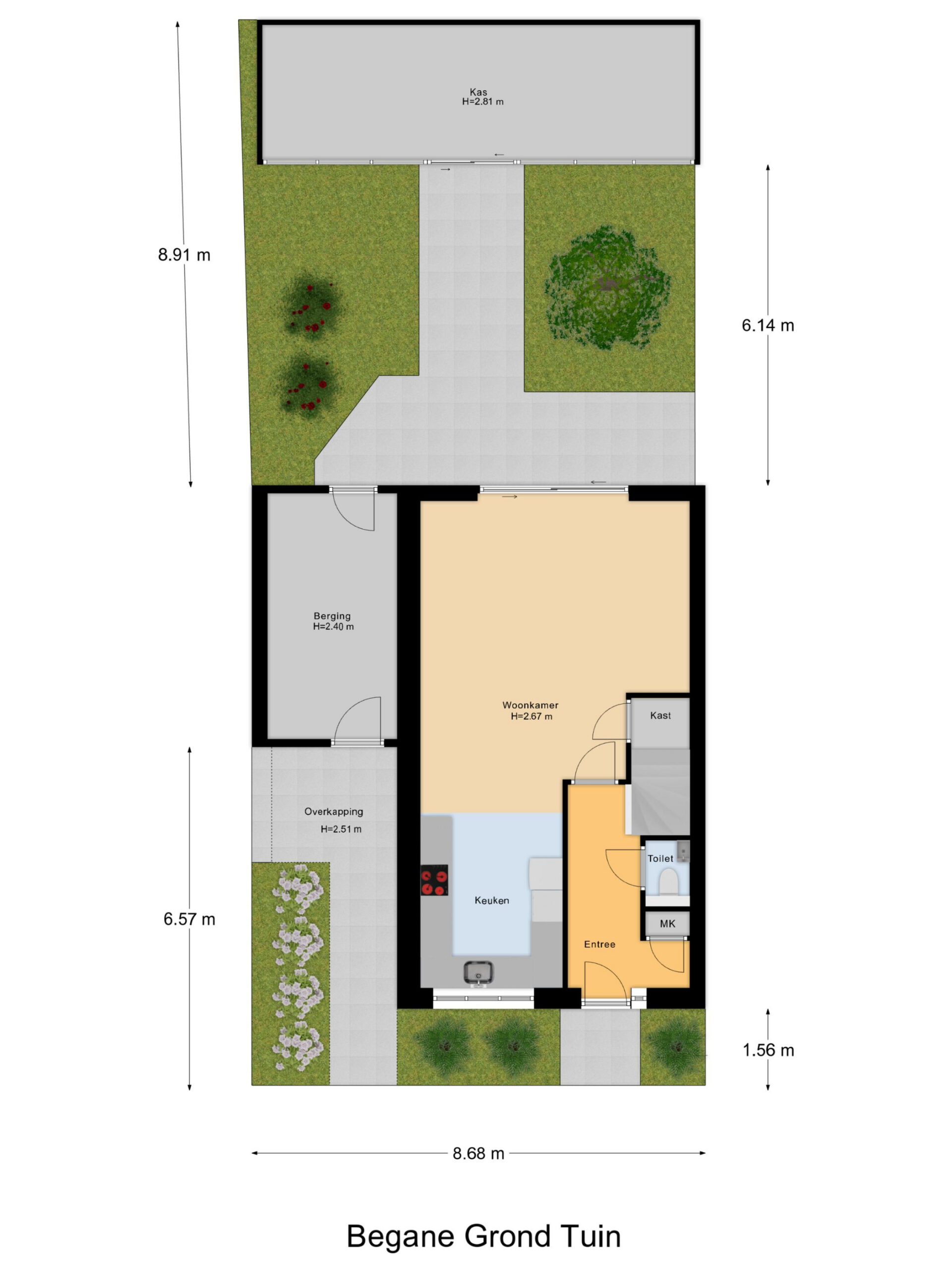 De achtertuin is gunstig gelegen op het westen en fraai aangelegd met bestrating en een gazon. Door de vrije ligging aan de zijkant van de woning en de breedte geniet je hier van volop zon en privacy. Achter in de tuin staat een karakteristieke, vrijstaande kas van circa 8 meter lang: een typisch Westlands element dat zich uitstekend leent als kas voor de tuinliefhebber, maar ook perfect is in te richten als sfeervolle, beschutte zitplek. De tuin is tevens bereikbaar via de achterom aan de zijkant van de woning.