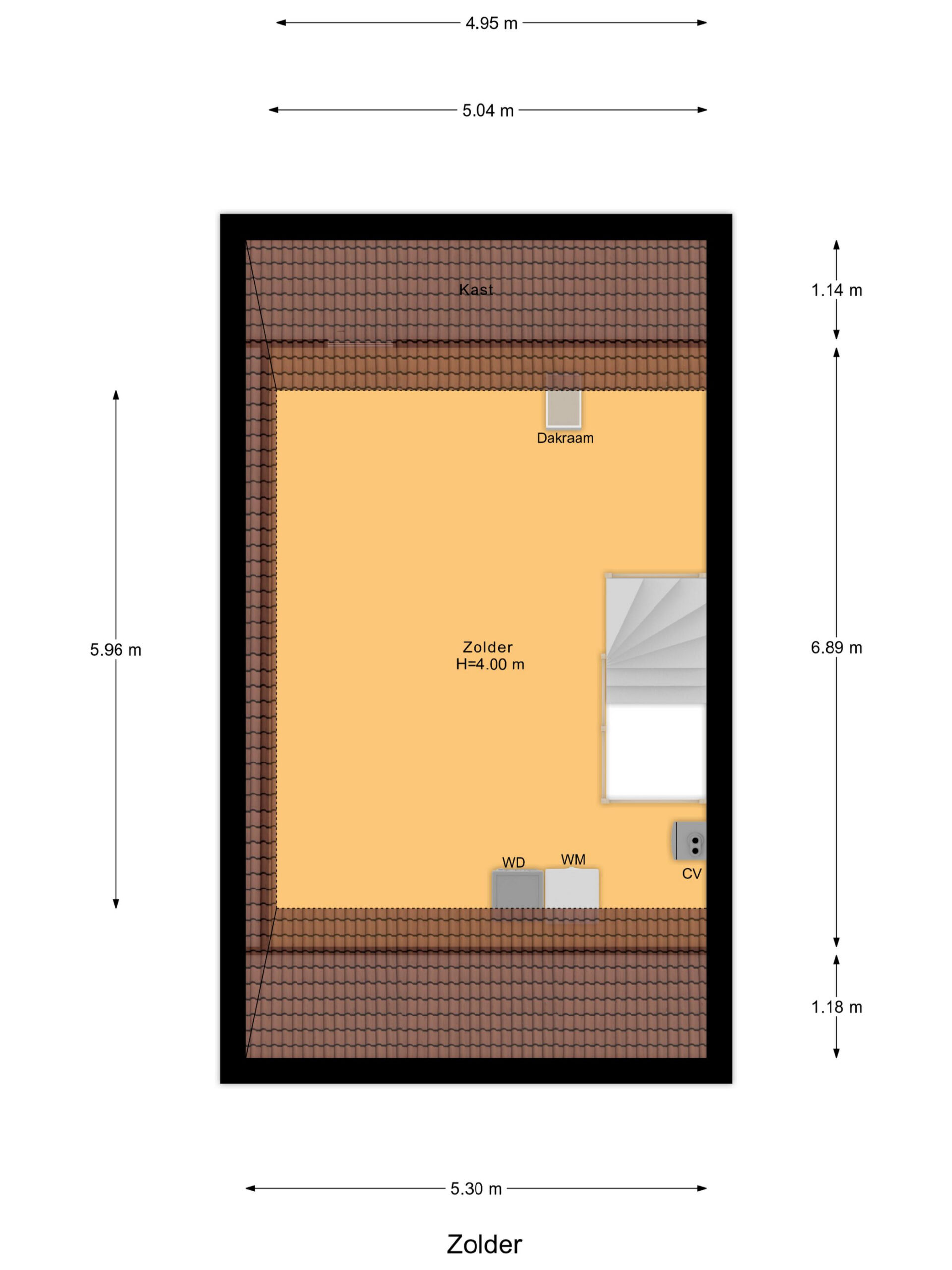 Een vaste trap leidt naar de ruime open zolder met dakraam. Deze verdieping is dankzij de hoge nok (ca. 4 meter) en het vloeroppervlak eenvoudig te gebruiken als vierde slaapkamer, werkkamer of hobbyruimte. Hier bevinden zich tevens ook de aansluitingen voor wasmachine en droger en de cv-installatie (2019).