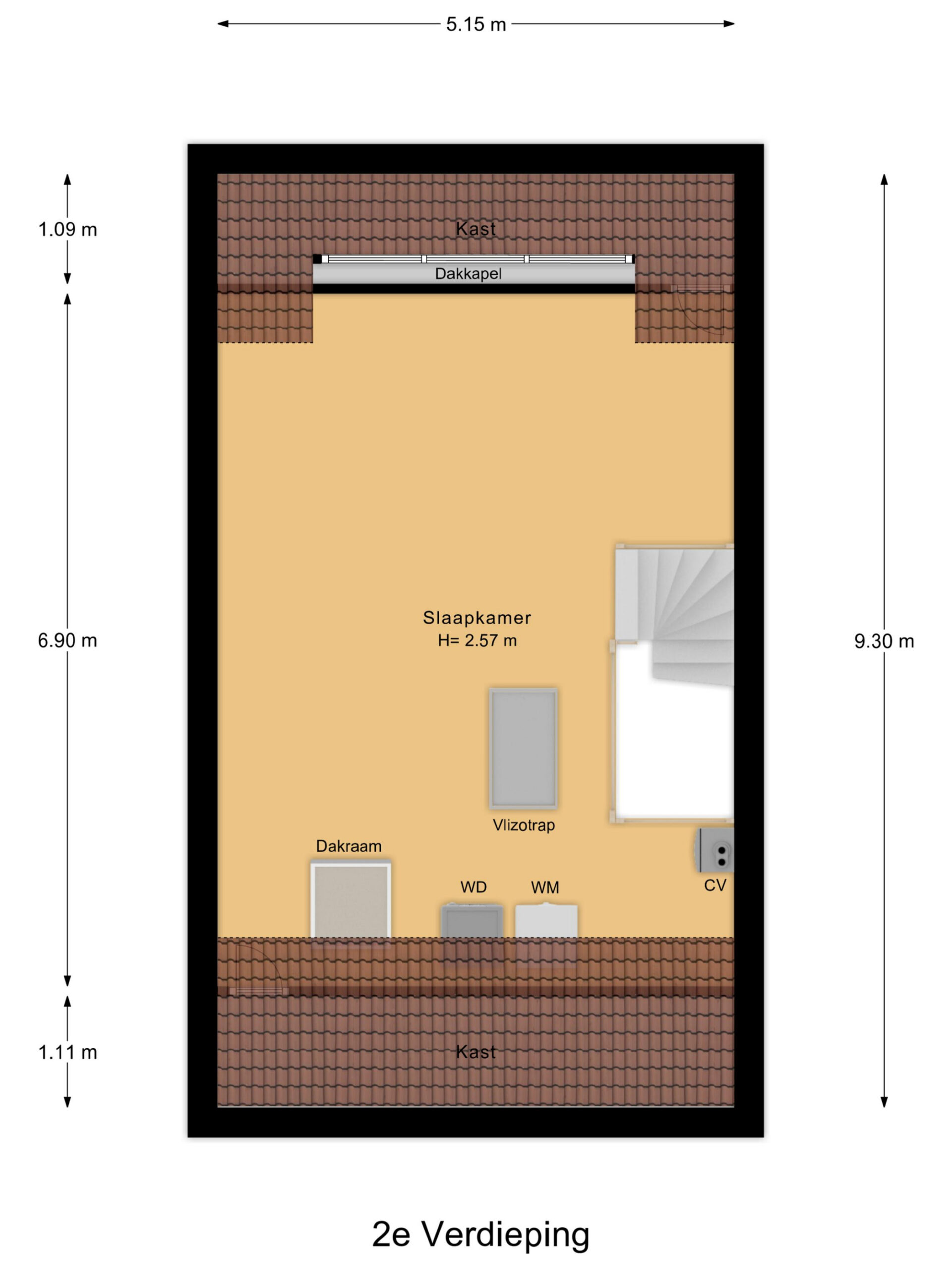 Op de tweede verdieping bevindt zich een ruime zolder met een grote open ruimte en volop mogelijkheden. Deze praktische verdieping kan geheel naar wens worden ingericht, bijvoorbeeld als extra slaapkamer, kantoor of hobby- of wasruimte. Hier bevinden zich tevens de aansluitingen voor de wasmachine en droger. De vliering biedt extra bergruimte voor het opbergen van spullen.