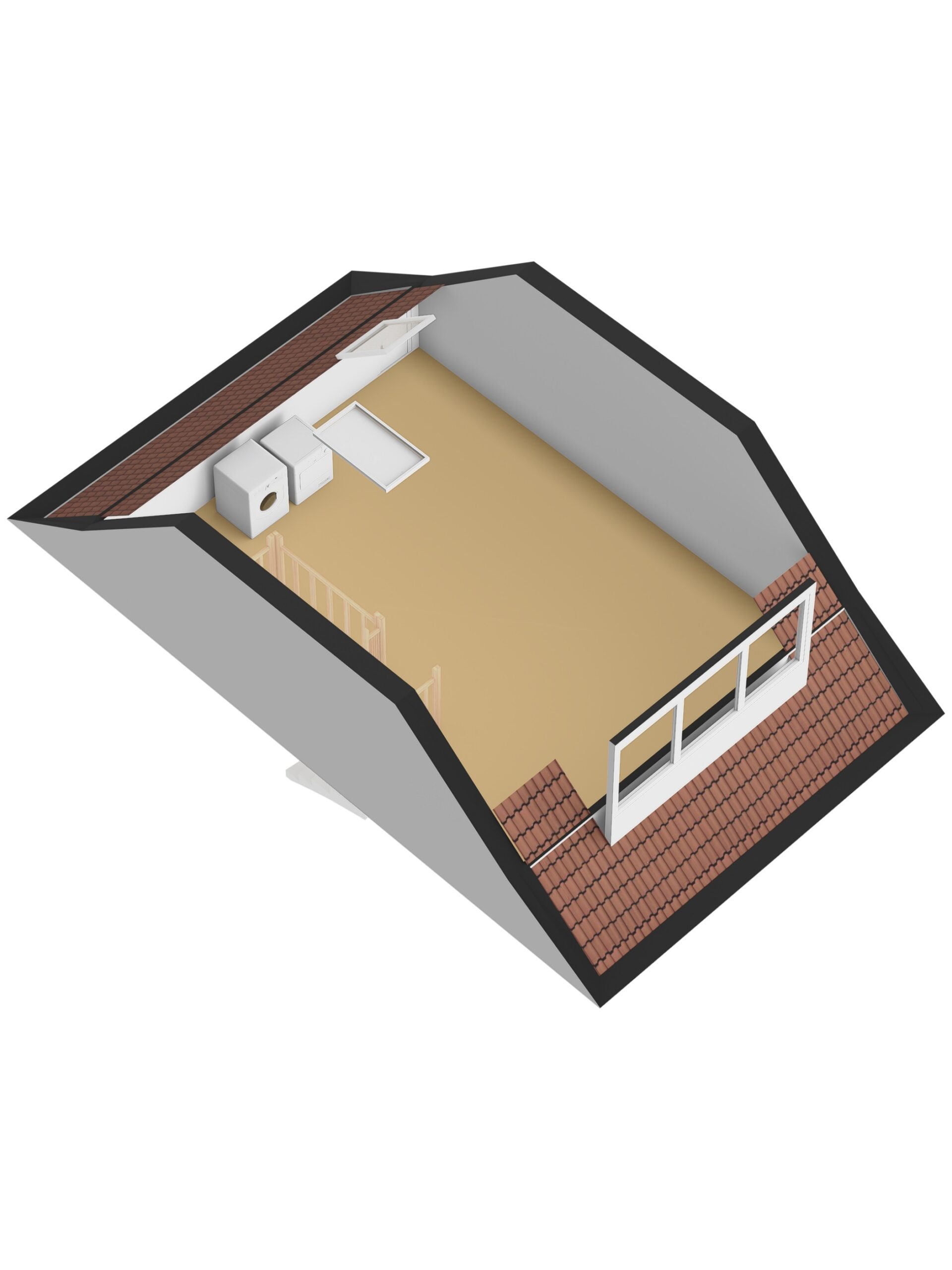 The second floor consists of a spacious attic with a large open area and plenty of possibilities. This practical space can be customised entirely to your needs, for example as an additional bedroom, office, hobby room or laundry area. The connections for a washing machine and dryer are also located here. The loft provides extra storage space.
