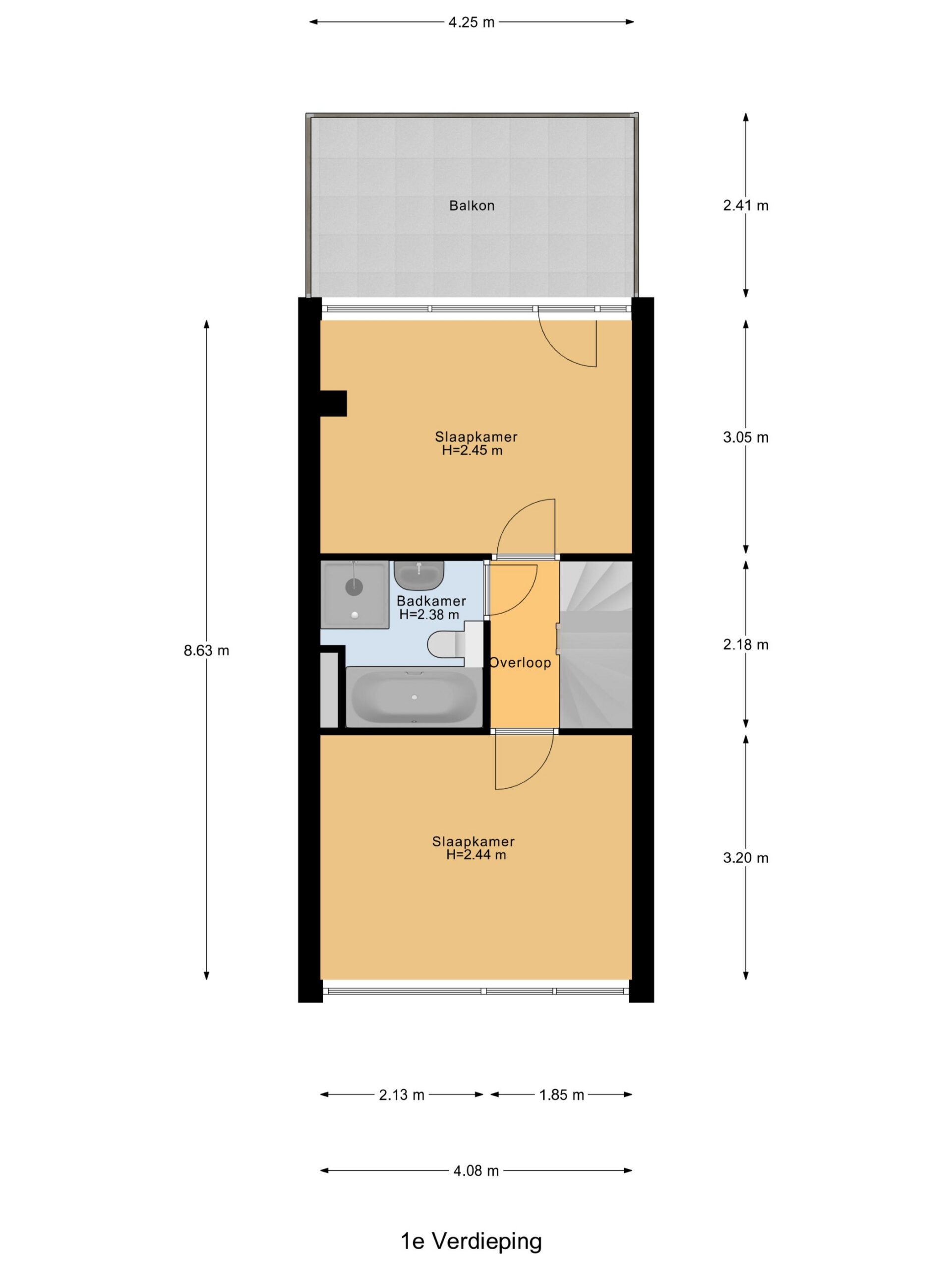 De overloop biedt toegang tot twee comfortabele slaapkamers en de badkamer. De slaapkamer aan de achterzijde is ruim van opzet en beschikt over toegang tot een balkon. De slaapkamer aan de voorzijde is eveneens goed bemeten en uitstekend geschikt als slaap-, werk- of kinderkamer. Beide slaapkamers zijn voorzien van rolluiken.