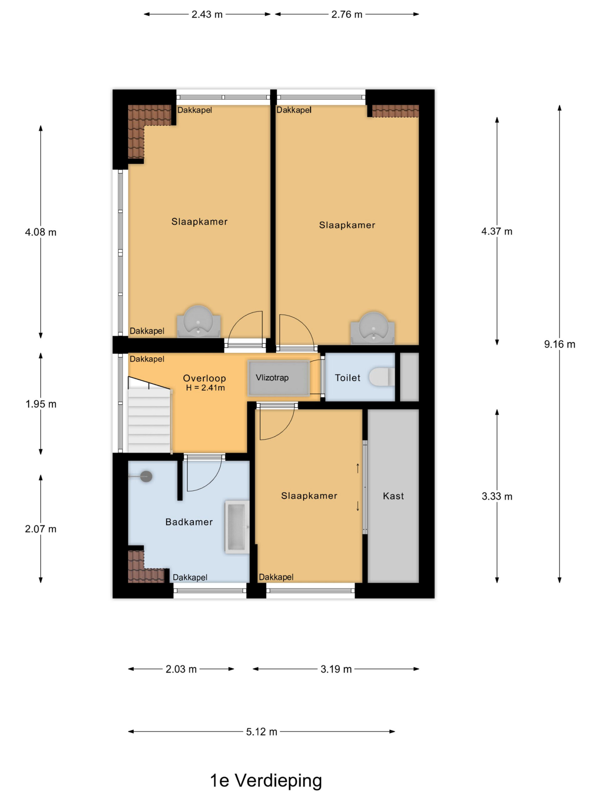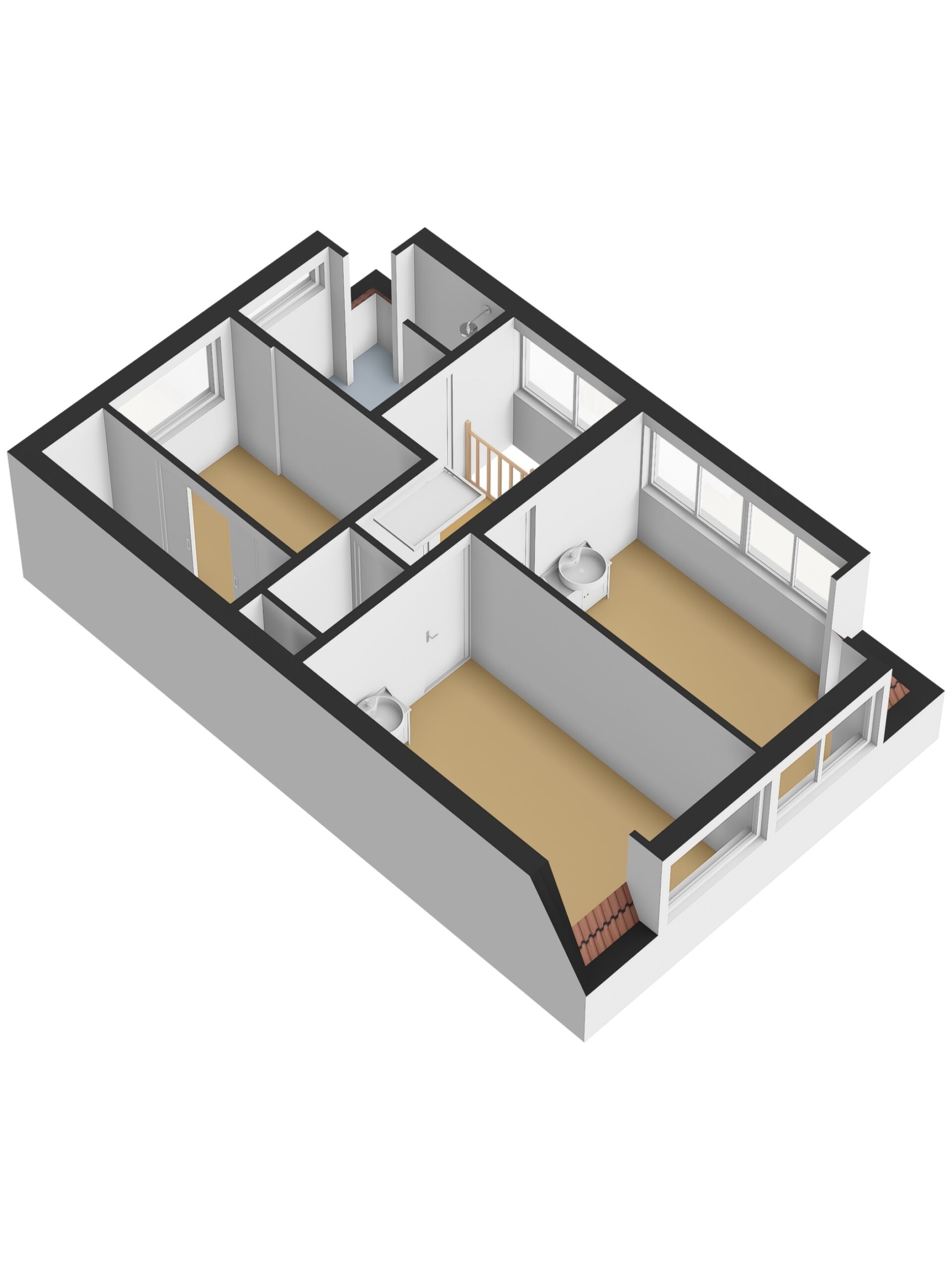 De slaapkamer aan de voorzijde beschikt over een dakkapel en een vaste kast. De twee slaapkamers aan de achterzijde zijn eveneens voorzien van dakkapellen. Eén van deze kamers heeft zelfs een extra dakkapel aan de zijkant, waardoor er aan twee kanten daglicht binnenkomt.