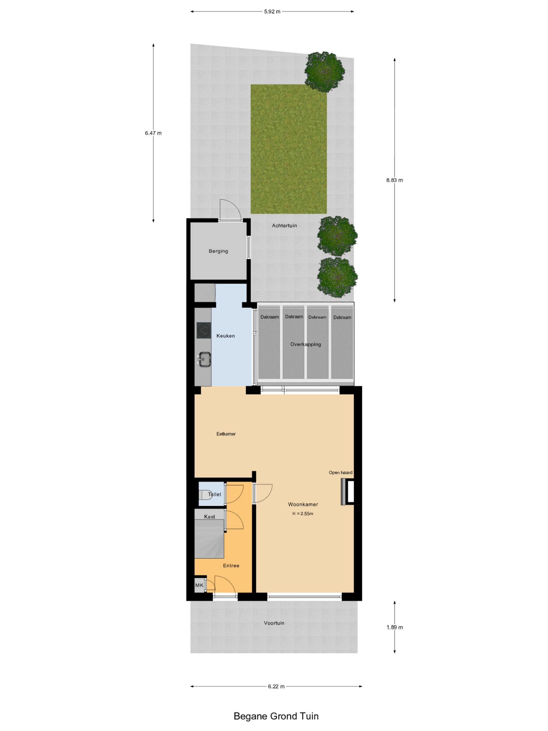 Via de voortuin bereikt u de entree. De hal is ruim en voorzien van een moderne meterkast, trapopgang, trapkast met extra bergruimte en een toiletruimte. Vanuit de hal heeft u toegang tot de lichte doorzonwoonkamer. Grote raampartijen aan zowel de voor- als achterzijde zorgen voor veel daglicht en een open sfeer. De woonkamer biedt ruimte voor een royale zit- en eethoek. Verder is de woonkamer voorzien van een aircosysteem, een elektrische kachel en een loopdeur naar de zonnige achtertuin. In de uitbouw aan de achterzijde bevindt zich de open keuken, uitgerust met diverse inbouwapparatuur.