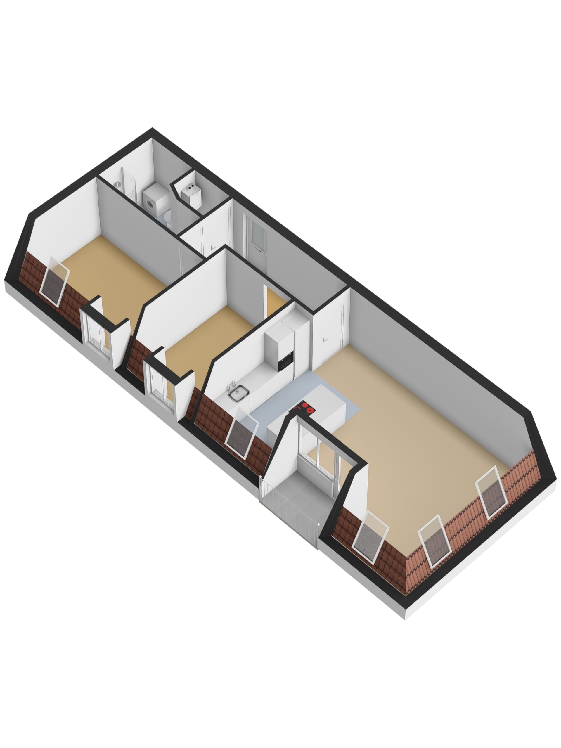 - Aantal kamers 3 (2 slaapkamers)