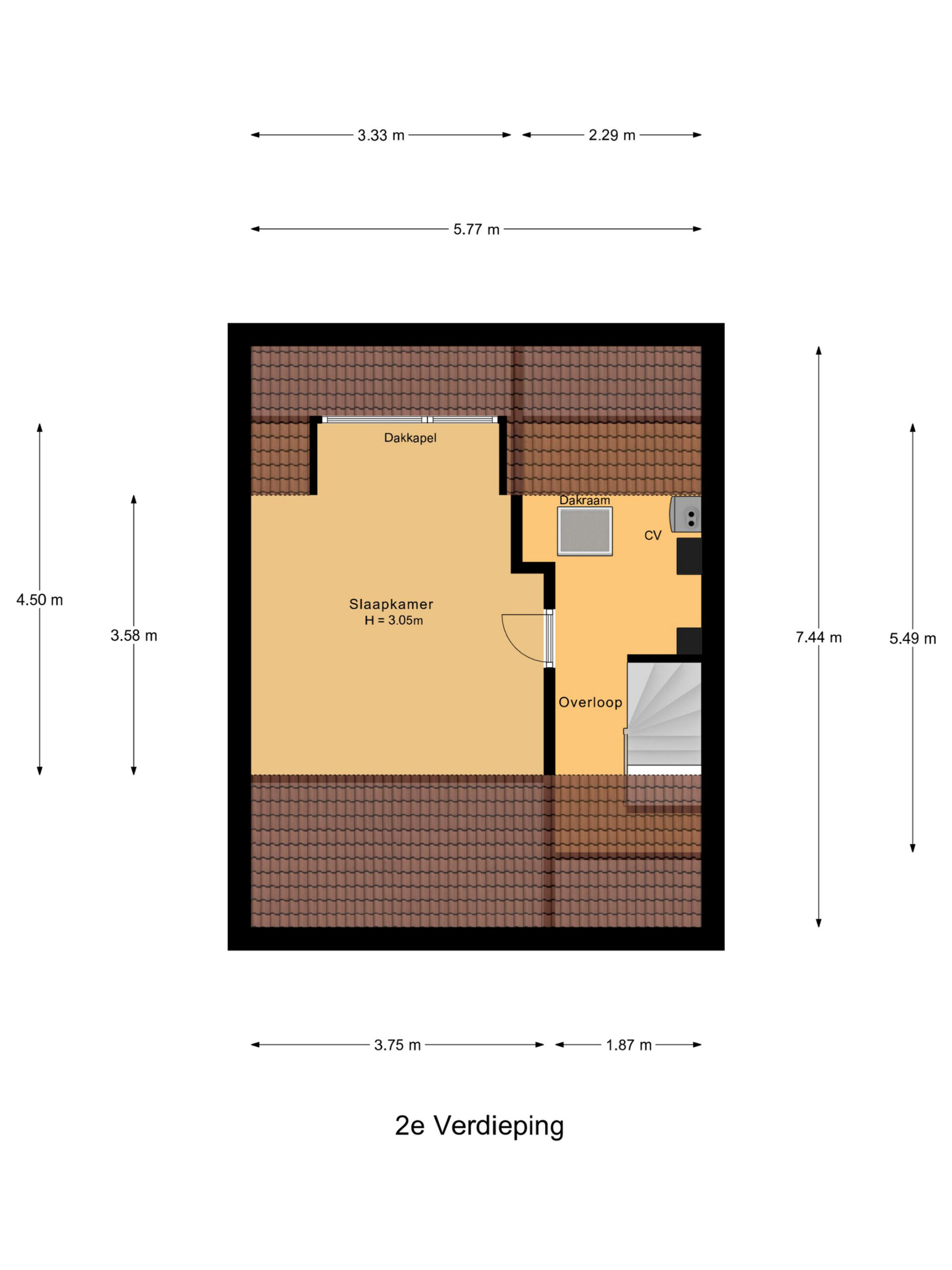 De tweede verdieping is netjes afgewerkt en functioneel ingedeeld. Op de overloop bevindt zich een dakraam dat zorgt voor natuurlijke lichtinval, evenals de opstelplaats voor de cv-installatie (Remeha, 2024). Aan de achterzijde is een volwaardige 3e slaapkamer gesitueerd, voorzien van een dakkapel die extra ruimte en licht biedt. De kamer is ideaal te gebruiken als slaap-, werk- of logeerkamer. Aan de andere zijde is praktische bergruimte beschikbaar achter de knieschotten.
