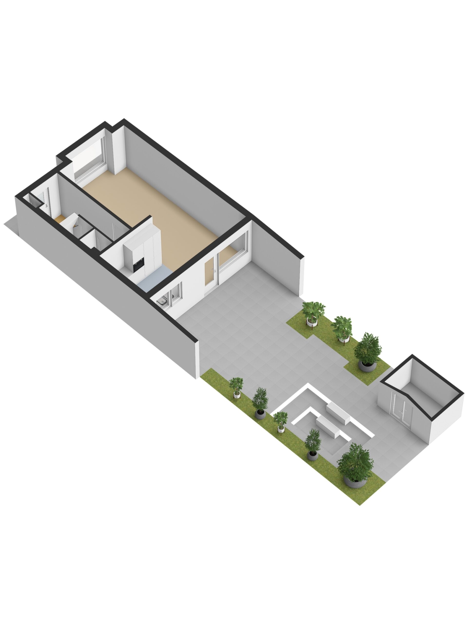 Via de eethoek is de achtertuin bereikbaar. De tuin is verzorgd aangelegd met sierbestrating, grind en groene borders. Achterin bevindt zich een sfeervolle zitkuil; een fijne plek om tot in de late uurtjes te genieten van het buitenleven. Tevens bevindt zich hier een vrijstaande metalen berging.