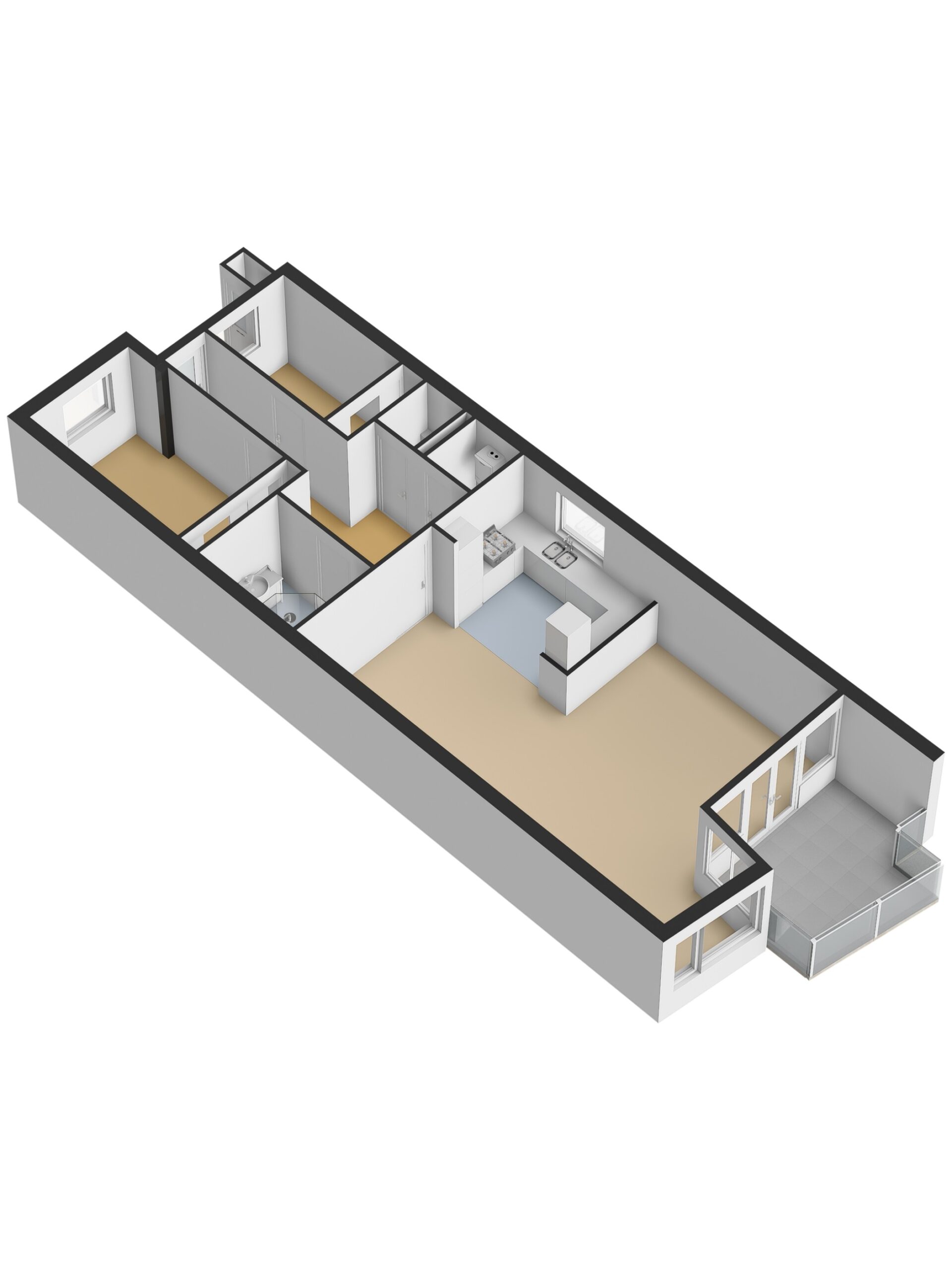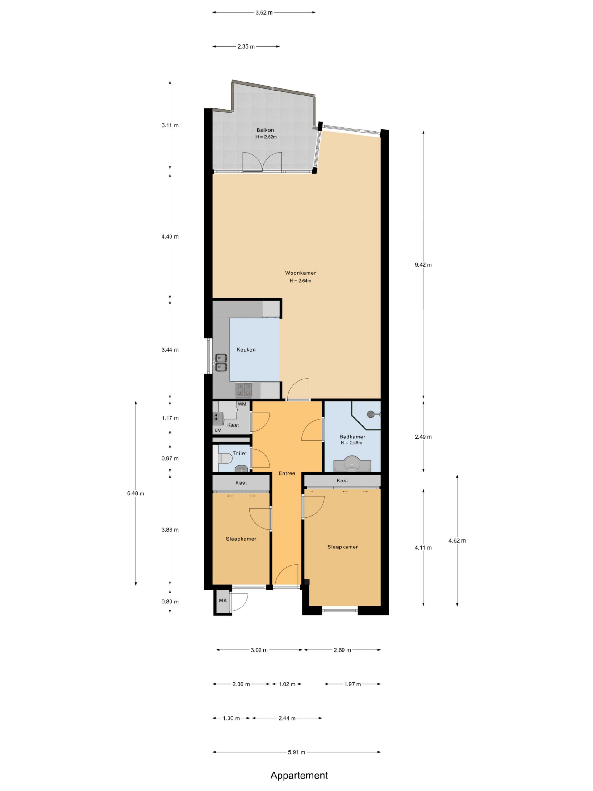- Aantal kamers 3 (2 slaapkamers)