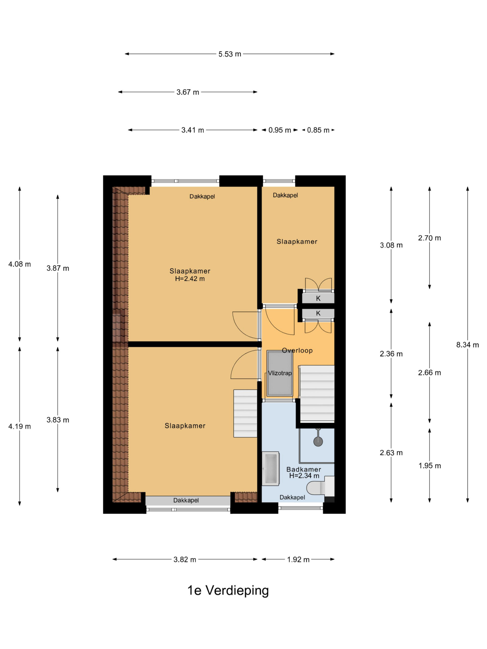 Op de eerste verdieping biedt de overloop toegang tot drie volwaardige slaapkamers en de badkamer. De slaapkamers zijn stuk voor stuk goed bemeten en praktisch in te delen, waardoor ze zich uitstekend lenen als kinder-, werk- of logeerkamer. Alle kamers zijn voorzien van kunststof kozijnen met HR+ beglazing, wat zorgt voor een comfortabele woonbeleving en een goede isolatie.