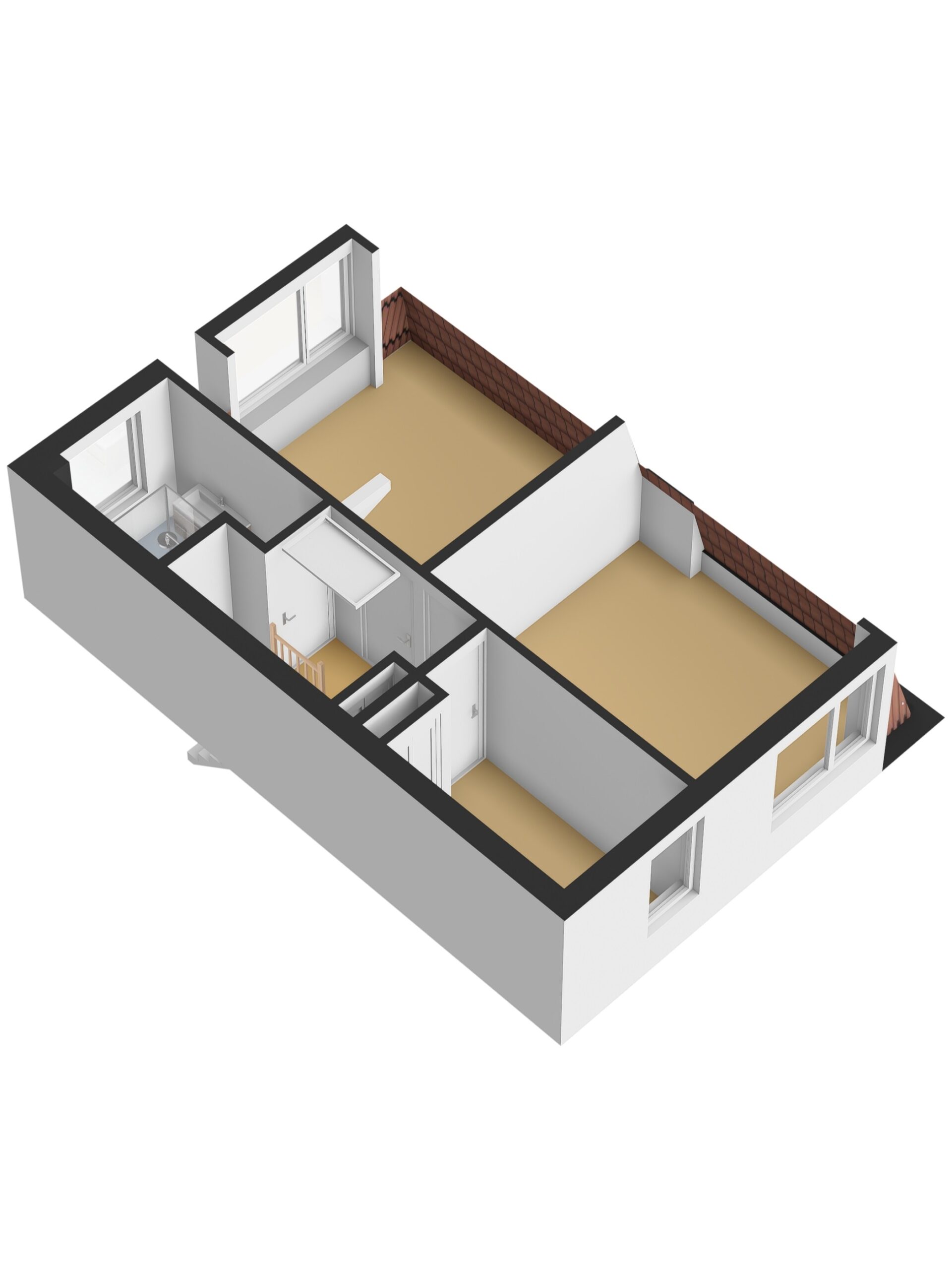 Via de slaapkamer aan de voorzijde is middels een trapopgang de zolderverdieping bereikbaar. Deze ruimte wordt thans gebruikt als slaapkamer en is voorzien van twee dakramen, waardoor er daglicht binnenvalt. Daarnaast zijn er praktische opbergplanken aanwezig. De huidige nokhoogte bedraagt circa 1,76 meter. Het is tevens mogelijk om hier bergruimte van te maken.