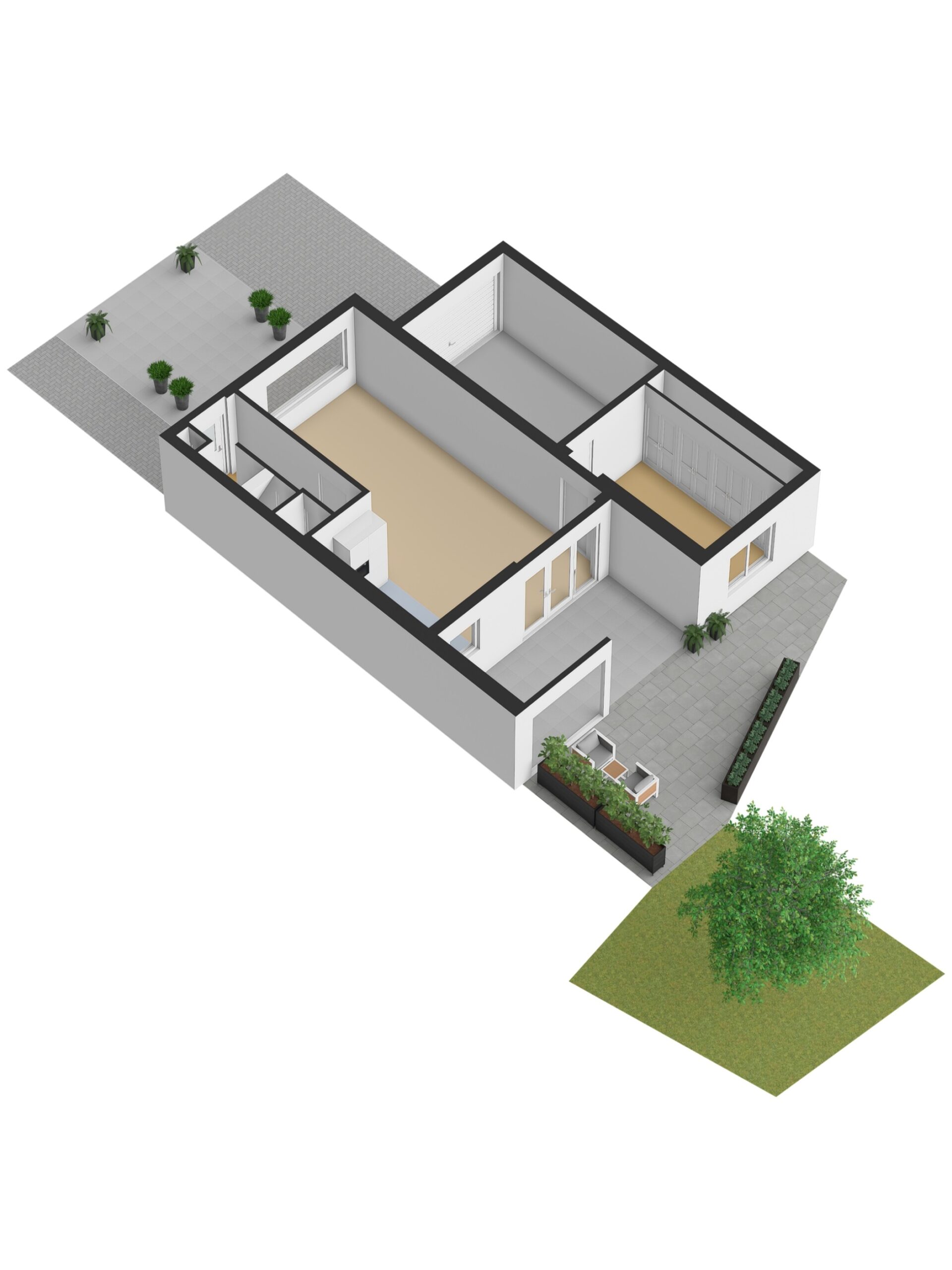 Vanuit de keuken geven openslaande deuren toegang tot de in 2017 gerealiseerde overkapping aan de achterzijde. De overkapping is voorzien van een lichtstraat, waardoor er een prettige, lichte buitenruimte is ontstaan die direct in verbinding staat met de woning. Deze ruimte leent zich uitstekend om, indien gewenst, in de toekomst volledig af te sluiten en te transformeren tot een volwaardige tuinkamer die het hele jaar door gebruikt kan worden. Een prachtige kans om de leefruimte verder te vergroten.