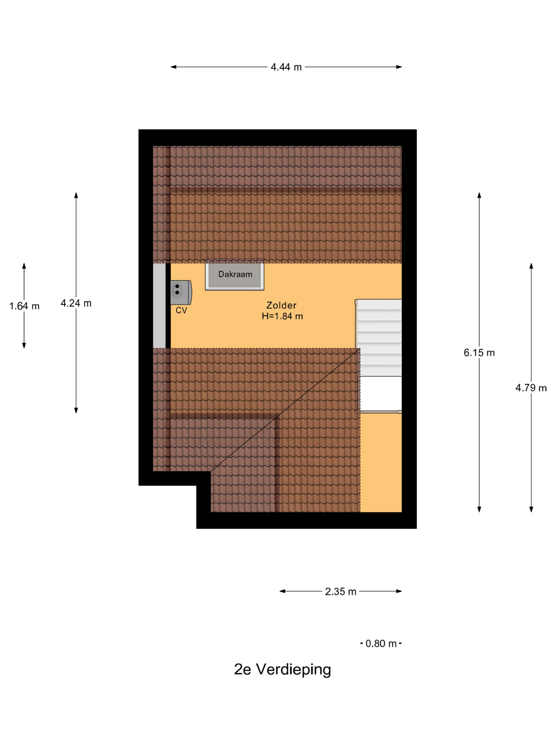 De zolderverdieping is voorzien van een dakraam, waardoor er natuurlijk daglicht binnenkomt. Hier bevindt zich tevens de opstelling van de CV-installatie (2019).