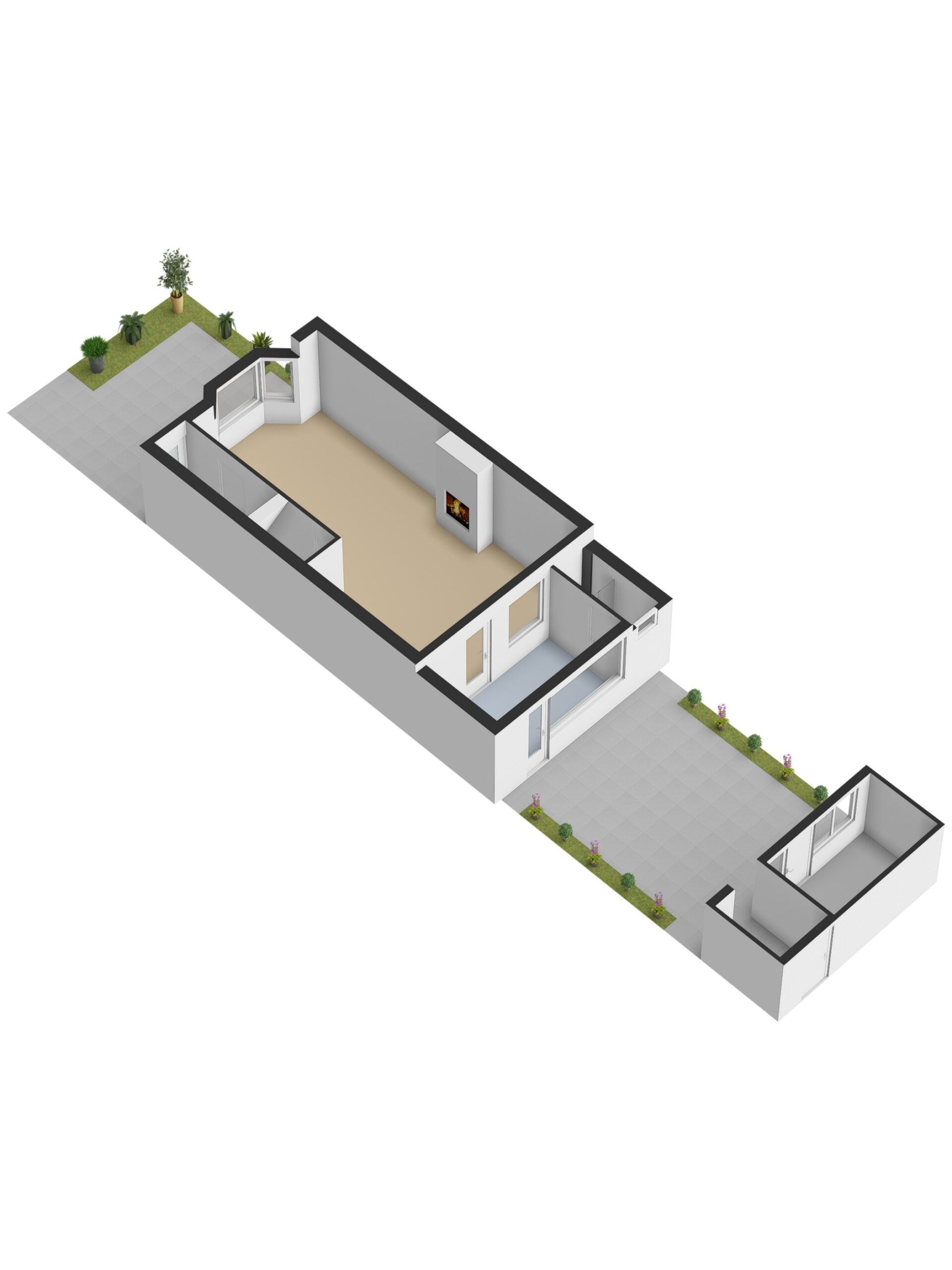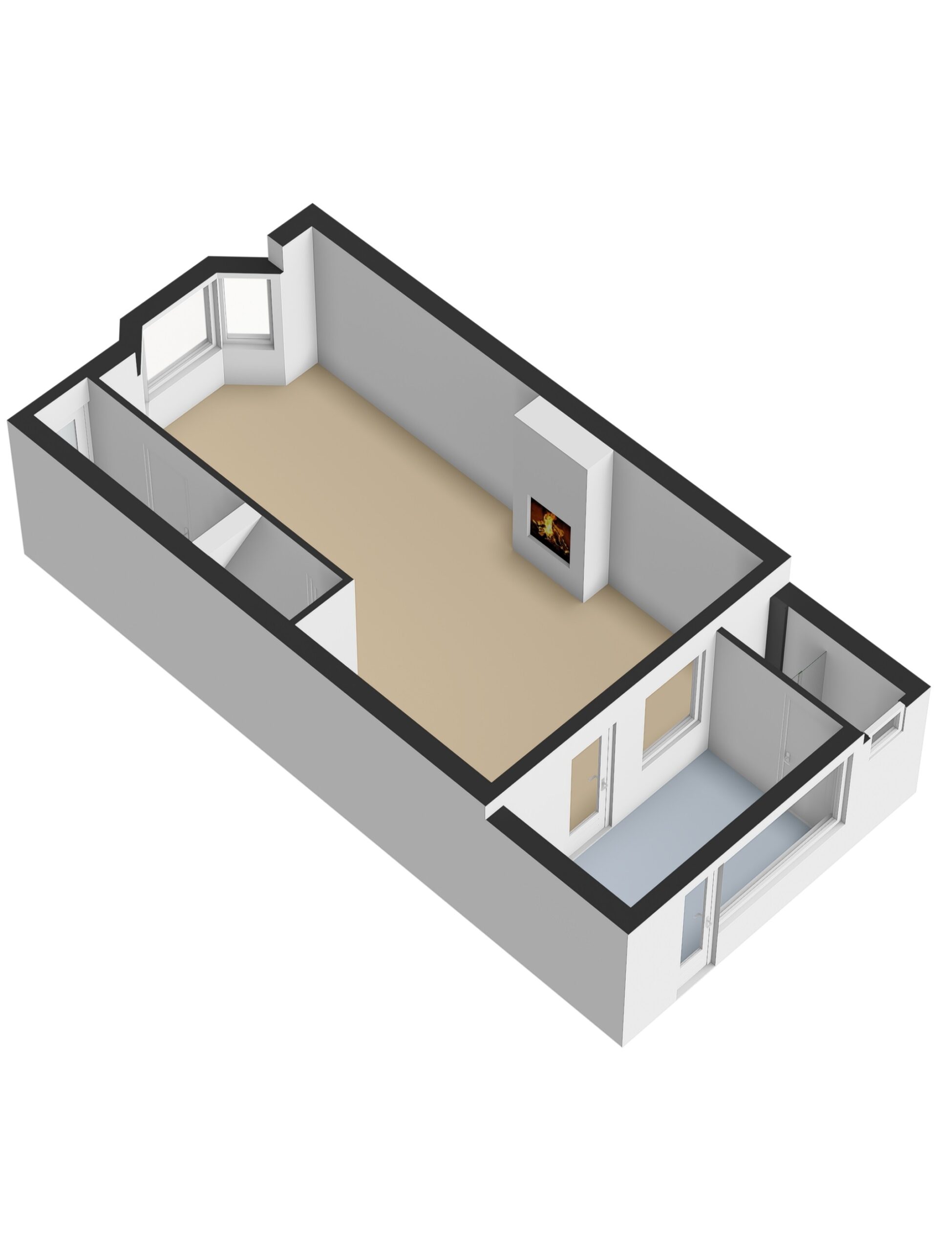 De woonkamer is een prettige, lichte leefruimte met een karakteristieke erker aan de voorzijde. De elektrische haard vormt een sfeervol middelpunt van de ruimte. De woonkamer strekt zich uit over de volledige lengte van de woning en biedt voldoende ruimte voor zowel een comfortabele zithoek als een ruime eethoek.