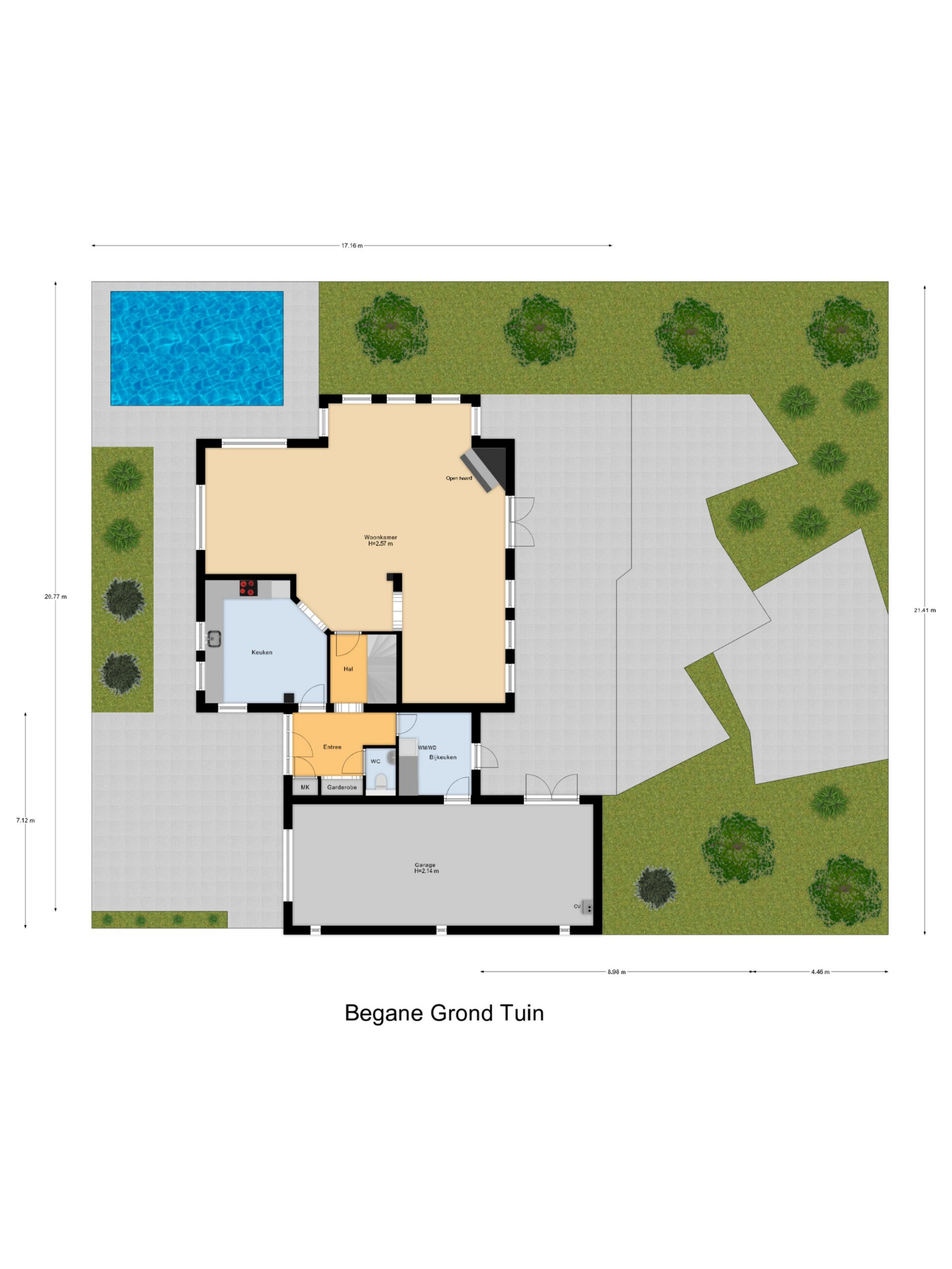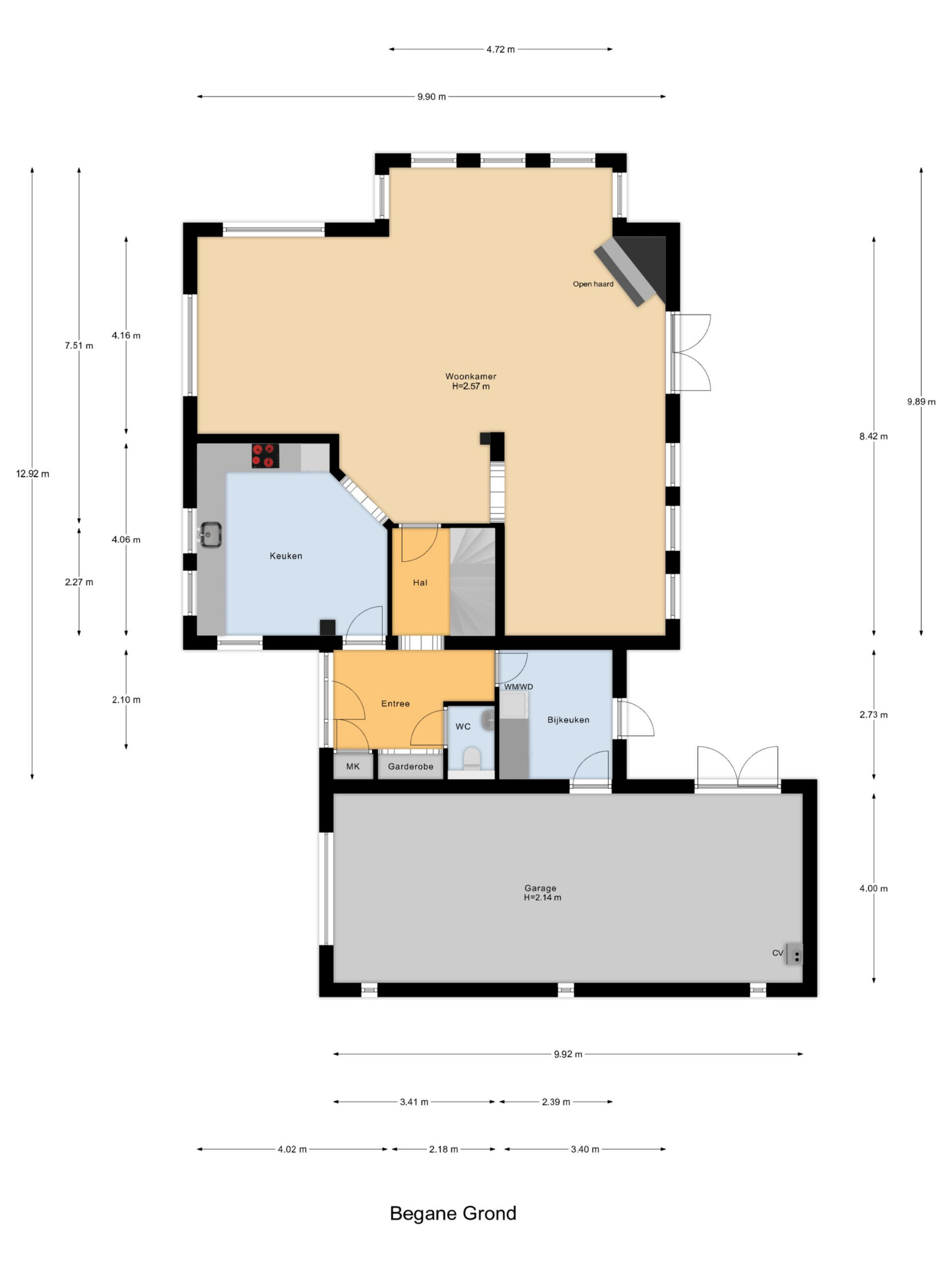 Via de fraai aangelegde voortuin met eigen oprit bereikt u de entree van de woning. De hal is ruim opgezet en biedt toegang tot de meterkast, garderobe, toiletruimte, keuken, woonkamer en wasruimte. Met de vaste trap bereikt u zowel de eerste verdieping als het souterrain; een praktische en veelzijdige indeling die direct opvalt bij binnenkomst.