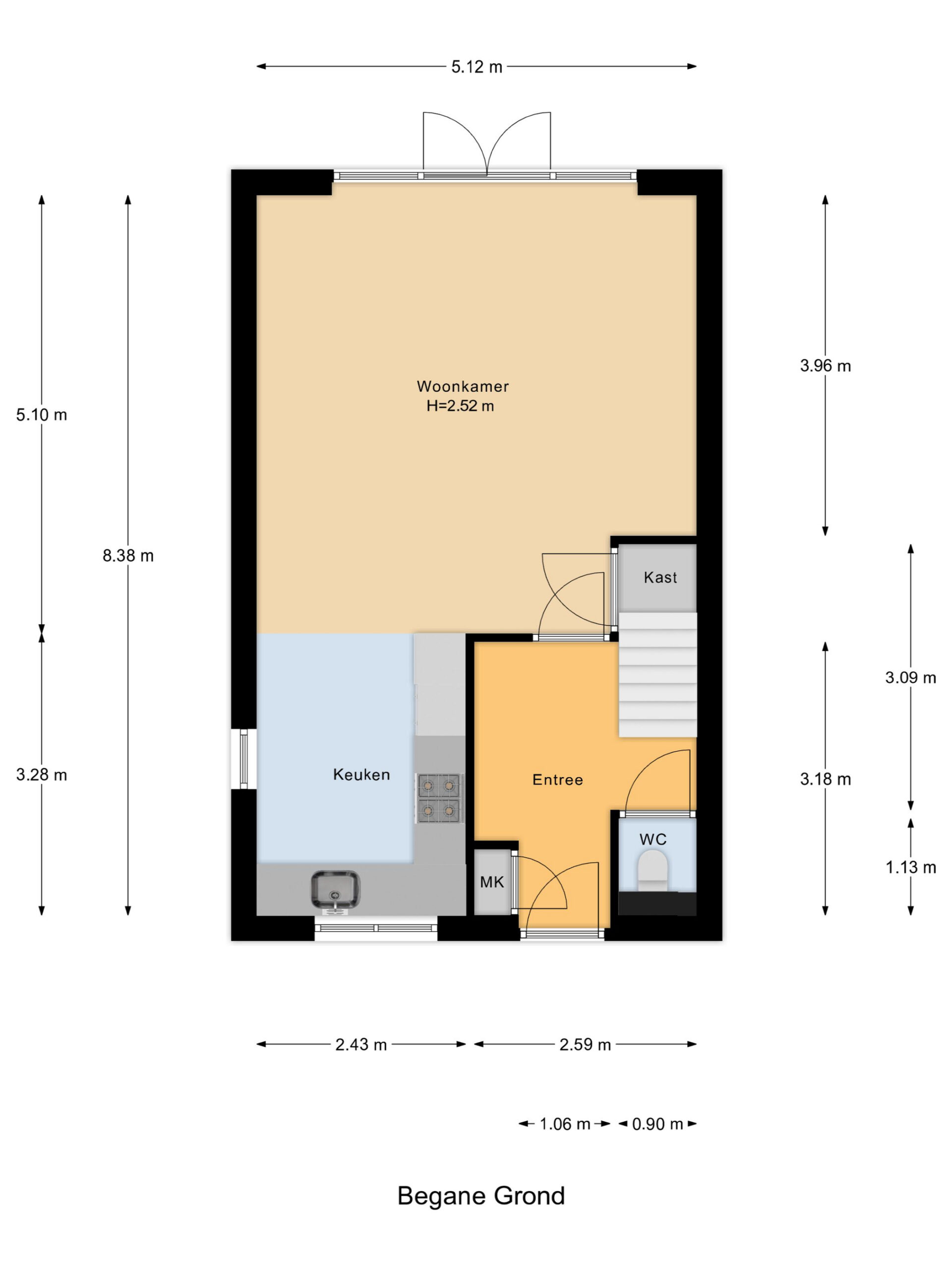 Via de verzorgd aangelegde voortuin bereikt u de entree van de woning. De hal biedt toegang tot de garderobe, meterkast en de toiletruimte. Vanuit hier betreedt u de tuingerichte woonkamer aan de achterzijde. Dankzij de openslaande deuren ontstaat een prettige verbinding met de achtertuin en vloeien binnen en buiten naadloos in elkaar over. Aan de voorzijde is de open keuken gesitueerd. De keuken is uitgevoerd in een neutrale, witte kleurstelling en voorzien van diverse inbouwapparatuur, waaronder een combi oven/magnetron, 5-pits gaskookplaat, vaatwasser en een koel-/vriescombinatie. Daarnaast beschikt de keuken over ruime kastruimte, waardoor comfort en functionaliteit hand in hand gaan.