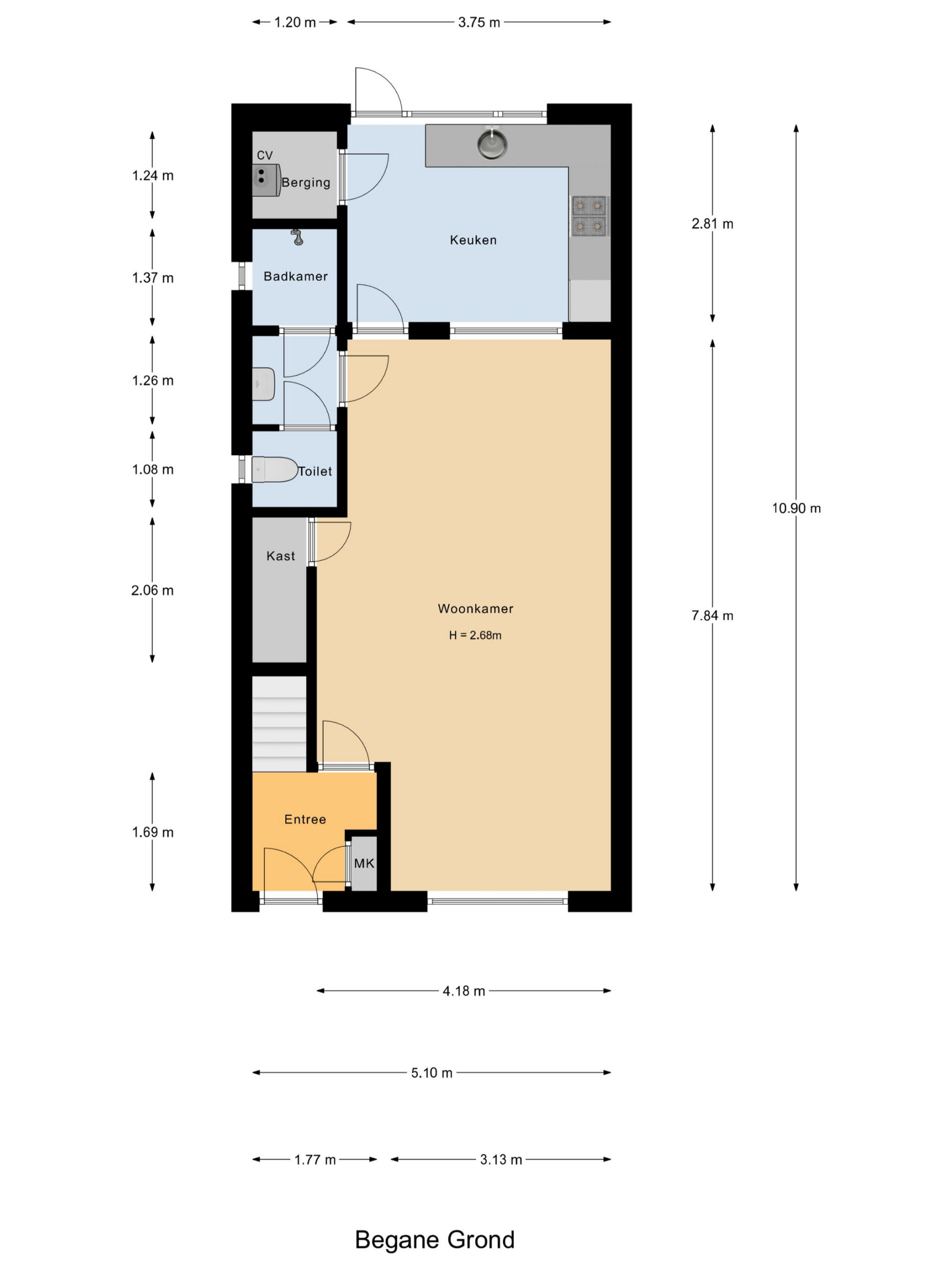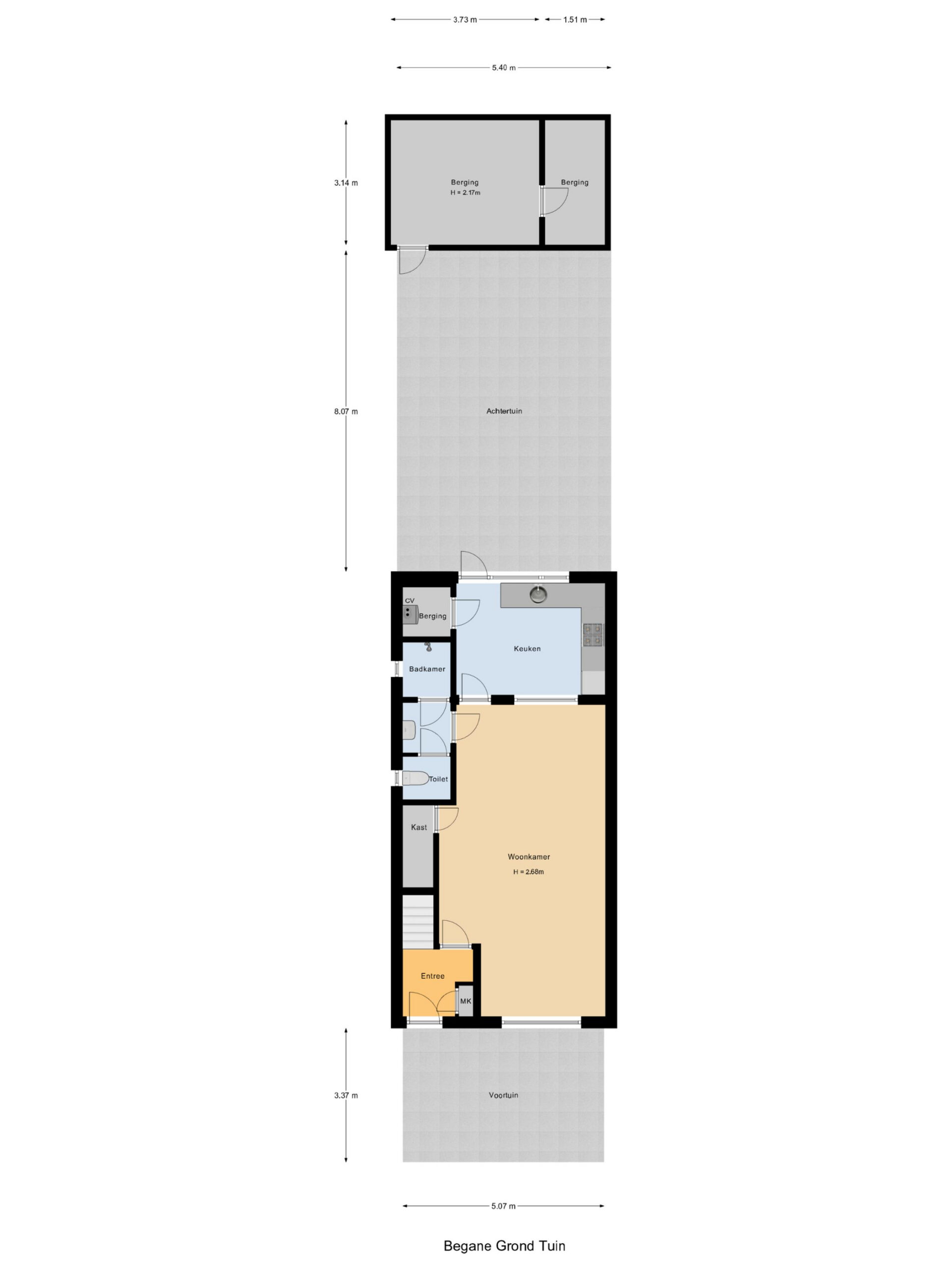 Via de voortuin bereikt u de entree. De hal biedt toegang tot de woonkamer aan de voorzijde, die dankzij de grote raampartijen heerlijk licht is. Achter de woonkamer vindt u de keuken met zicht op de achtertuin. Tevens bevinden zich op de begane grond de badkamer, separaat toilet en een handige berging met cv-opstelling.