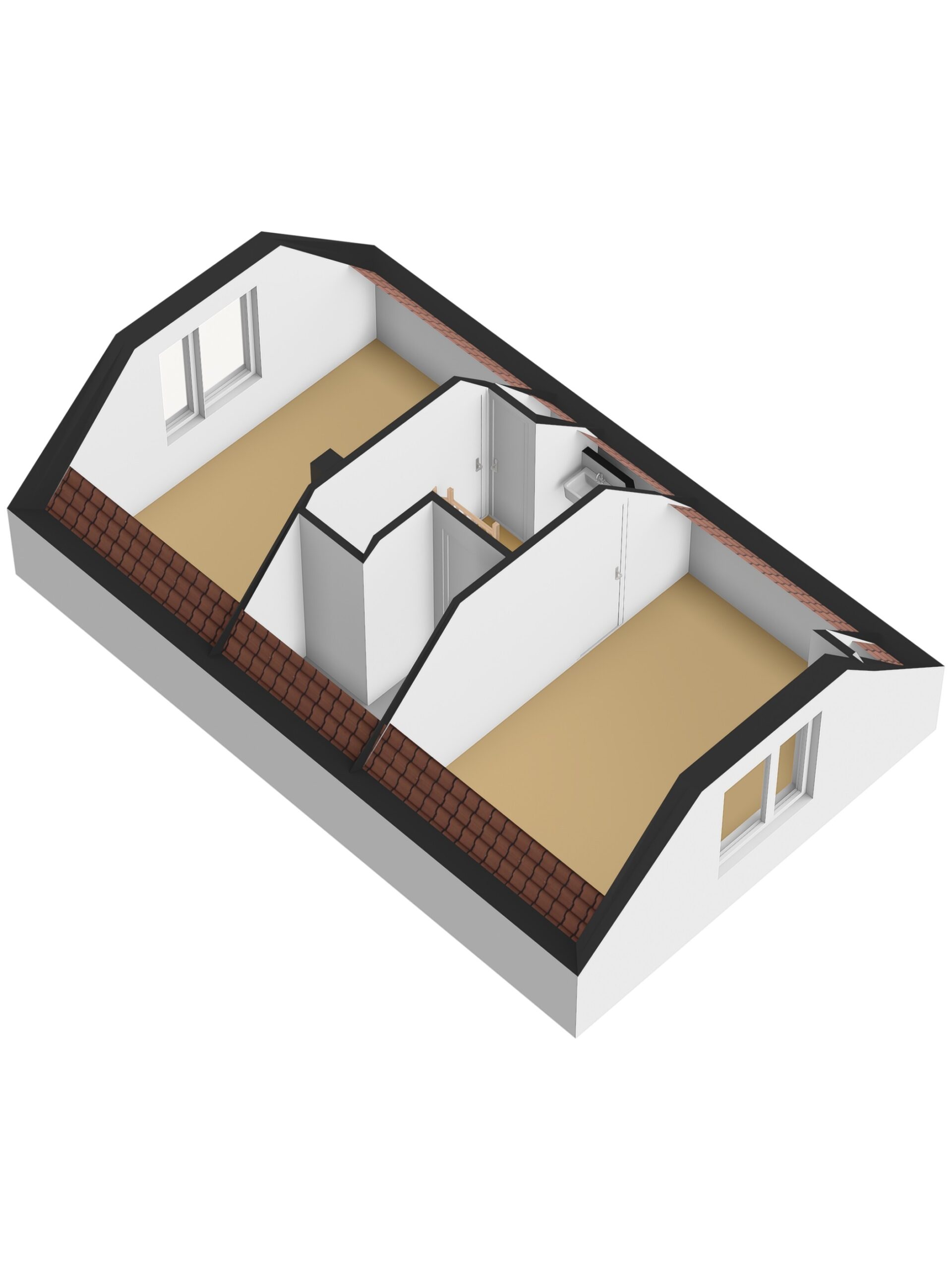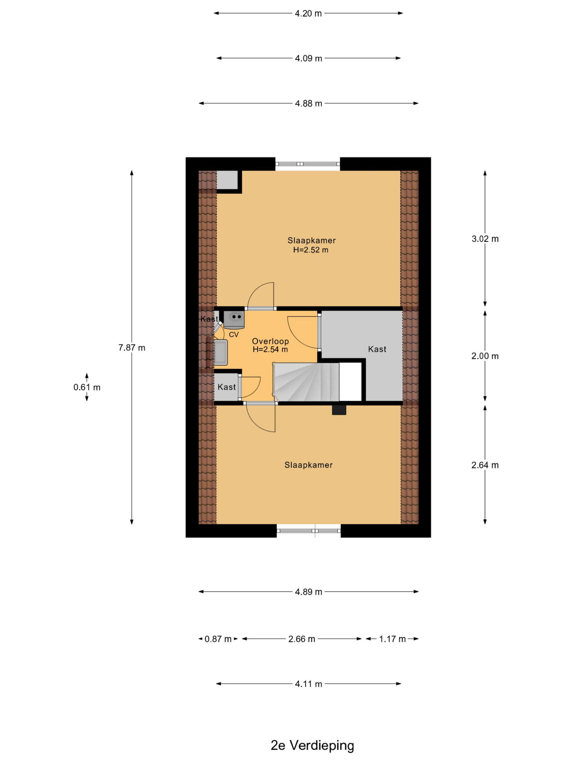Via de vaste trap bereikt u de tweede verdieping. Hier vindt u een verrassend ruime verdieping met twee volwaardige slaapkamers, een praktische bergruimte en de opstelplaats voor de cv-ketel, evenals de aansluitingen voor de wasmachine en droger en een wastafel. De slaapkamers zijn nagenoeg identiek van formaat en beschikken over schuine daklijnen.