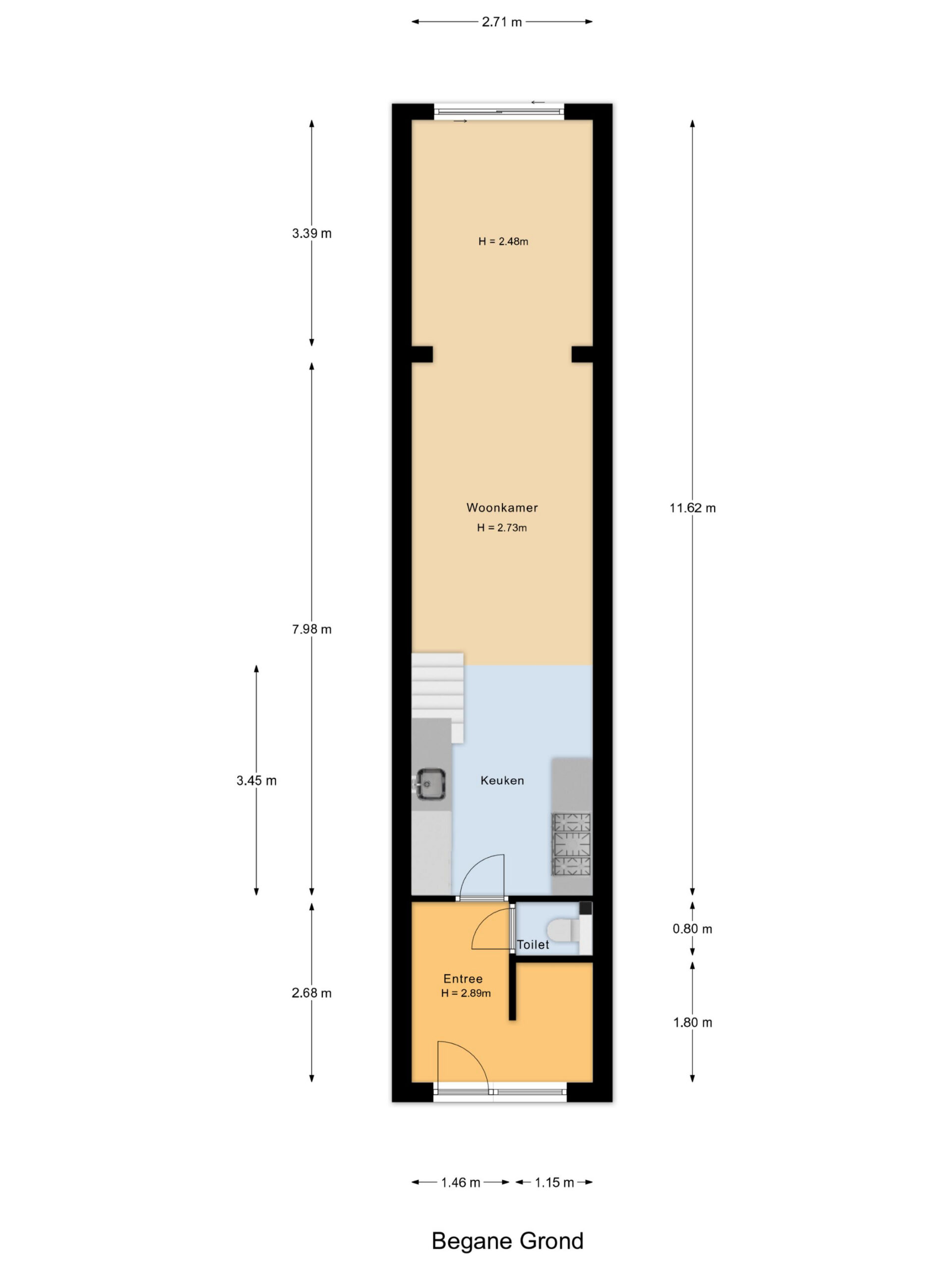 – De woonoppervlakte bedraagt 68 m² en het perceeloppervlak bedraagt 72 m2.