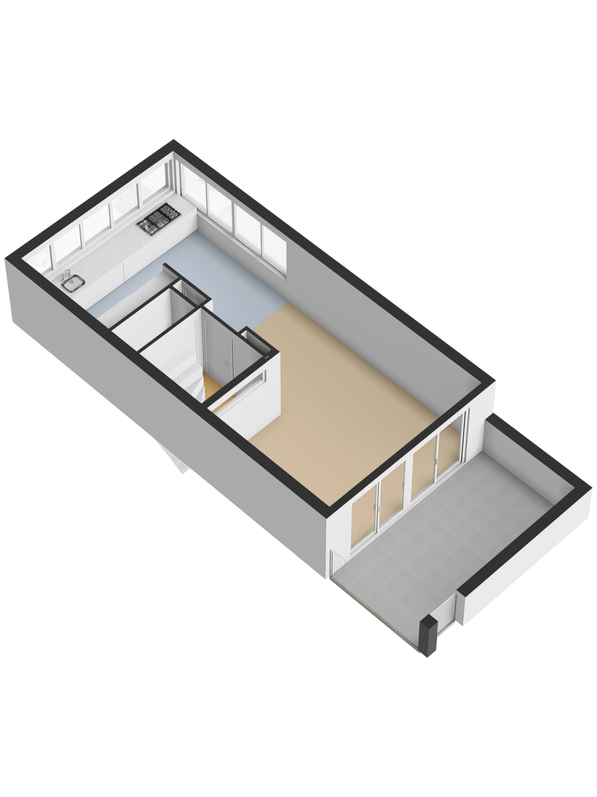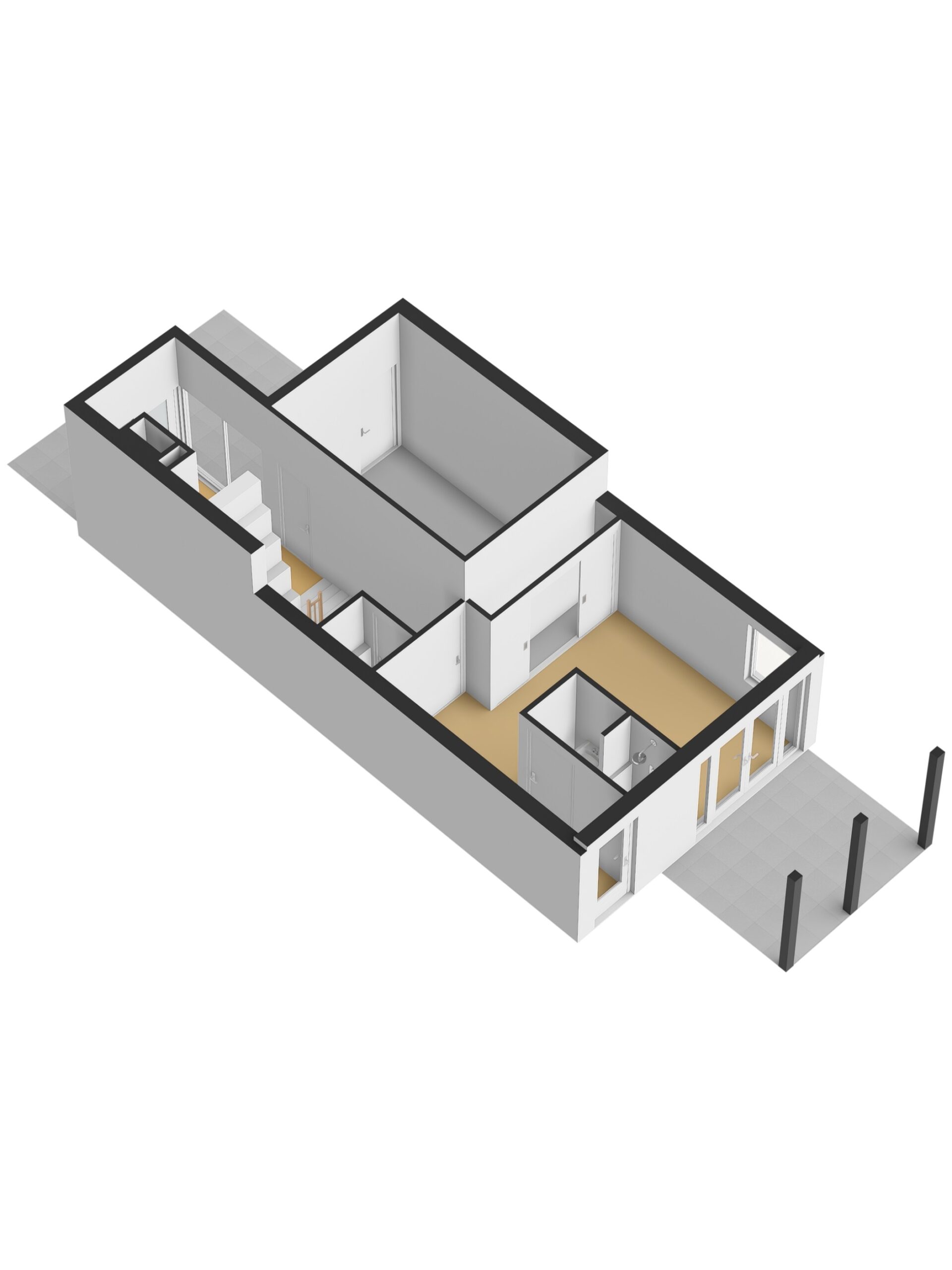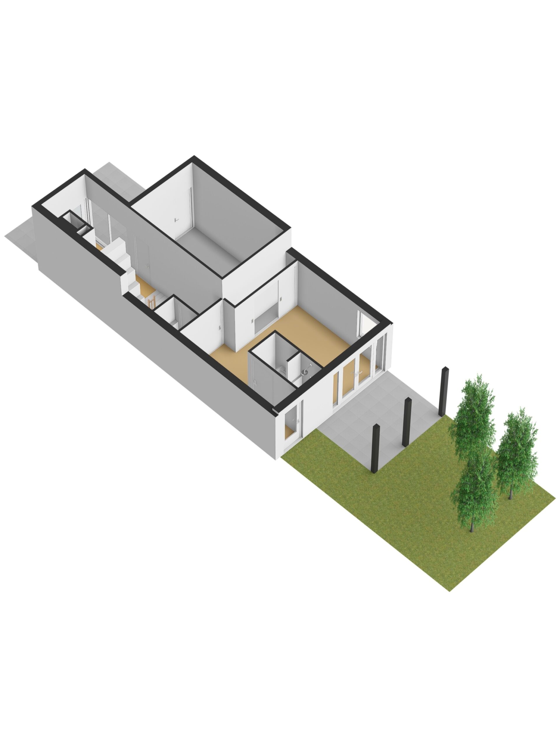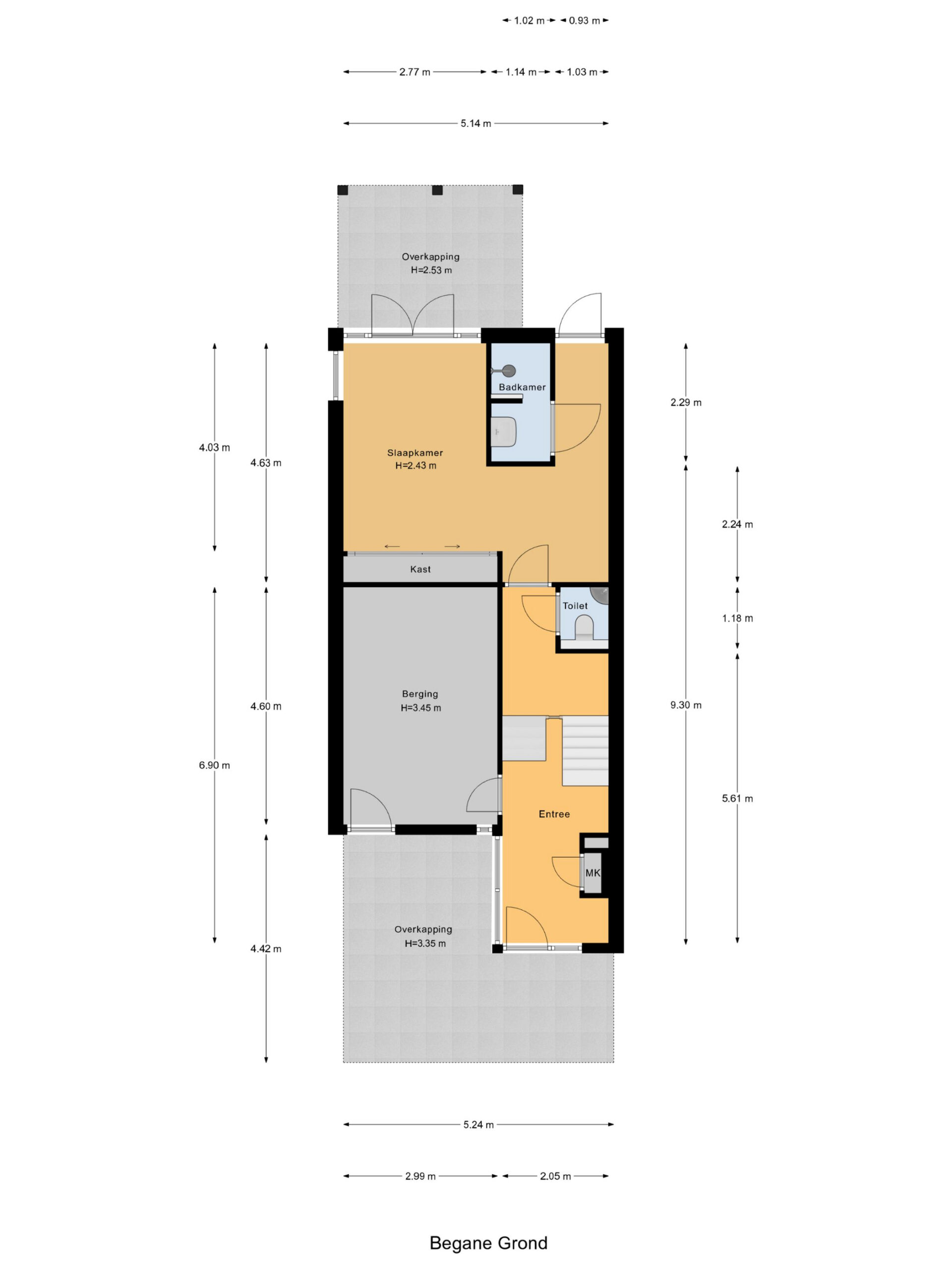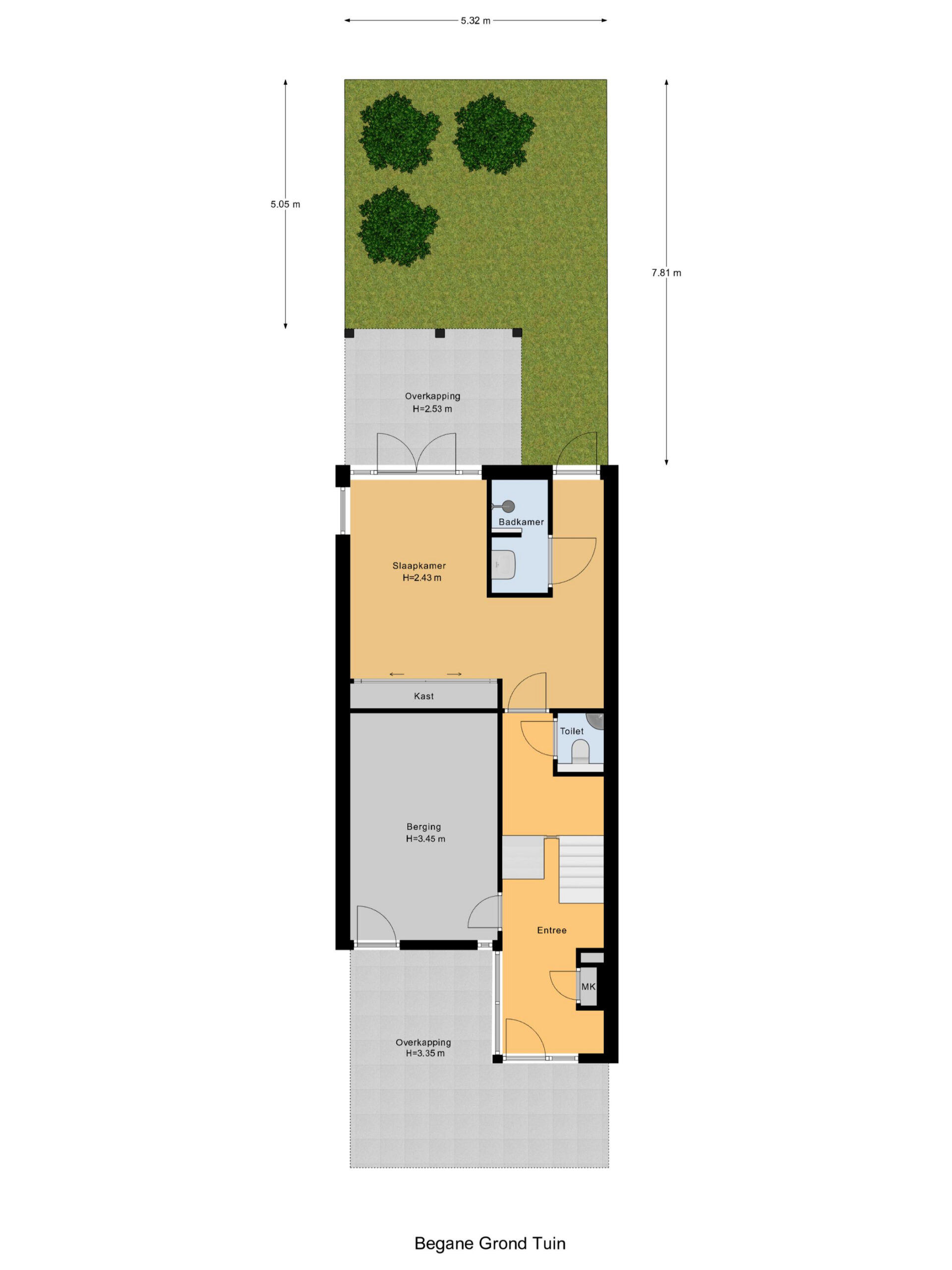 Via de voortuin met overkapping betreedt u de hal van de woning. De entreehal geeft toegang tot een modern toilet, de trapopgang, meterkast, vaste kast en de ruime inpandige berging. Aan de achterzijde van de woning bevindt zich een slaapkamer met aangrenzende badkamer, voorzien van een inloopdouche, wastafel en toilet. Deze ruimte is ideaal voor wie een slaap- of werkplek op de begane grond wenst.