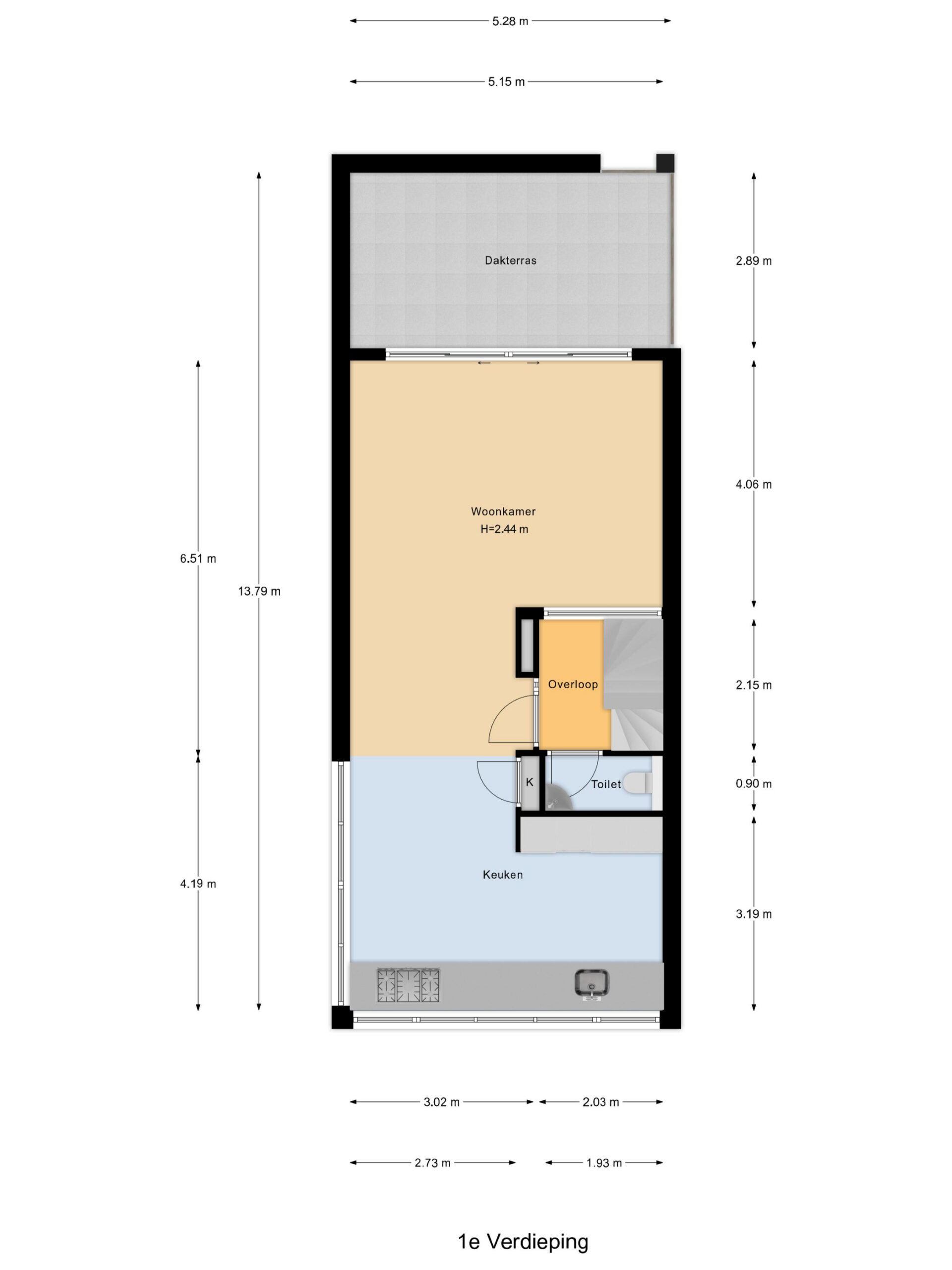 De lichte en sfeervolle woonkamer bevindt zich aan de achterzijde van de woning en biedt toegang tot een ruim dakterras, gelegen op het zonnige zuidwesten. Aan de voorzijde treft u de open keuken, uitgerust met inbouwapparatuur (2006). Daarnaast is er op deze verdieping een separaat toilet aanwezig. Dankzij de hoekligging geniet deze etage van veel natuurlijke lichtinval, en is de gehele verdieping afgewerkt met een mooie eikenhouten vloer.