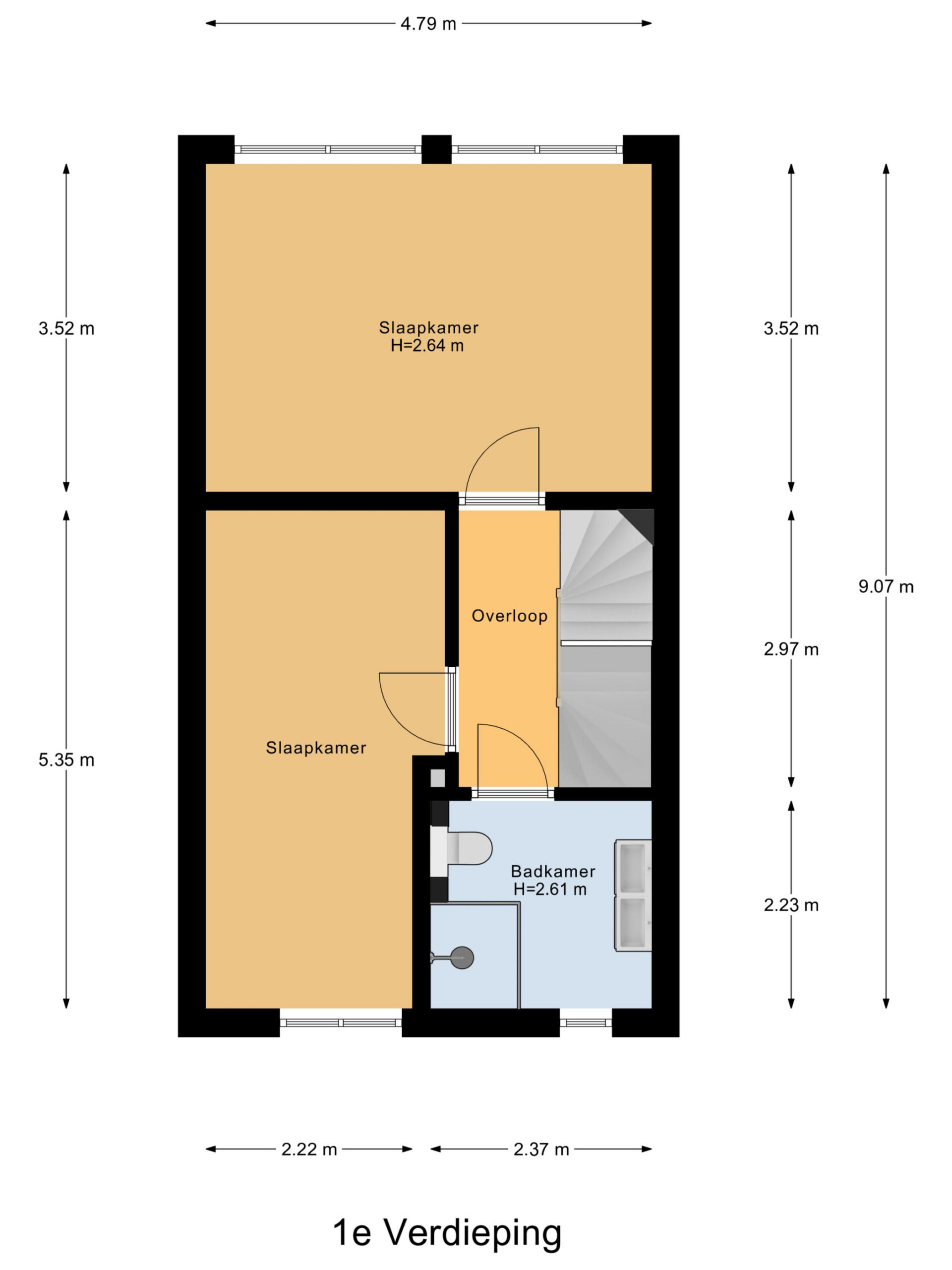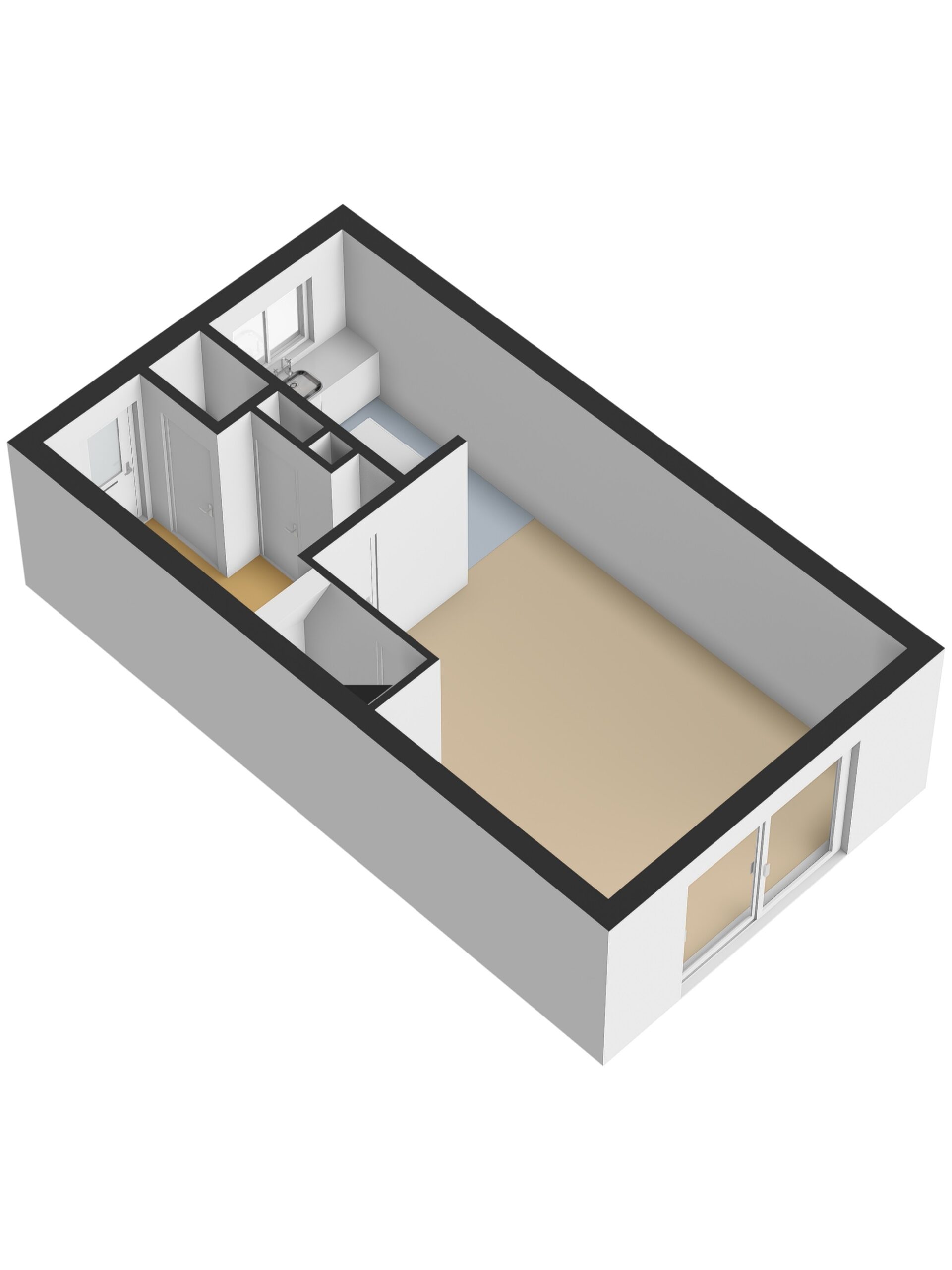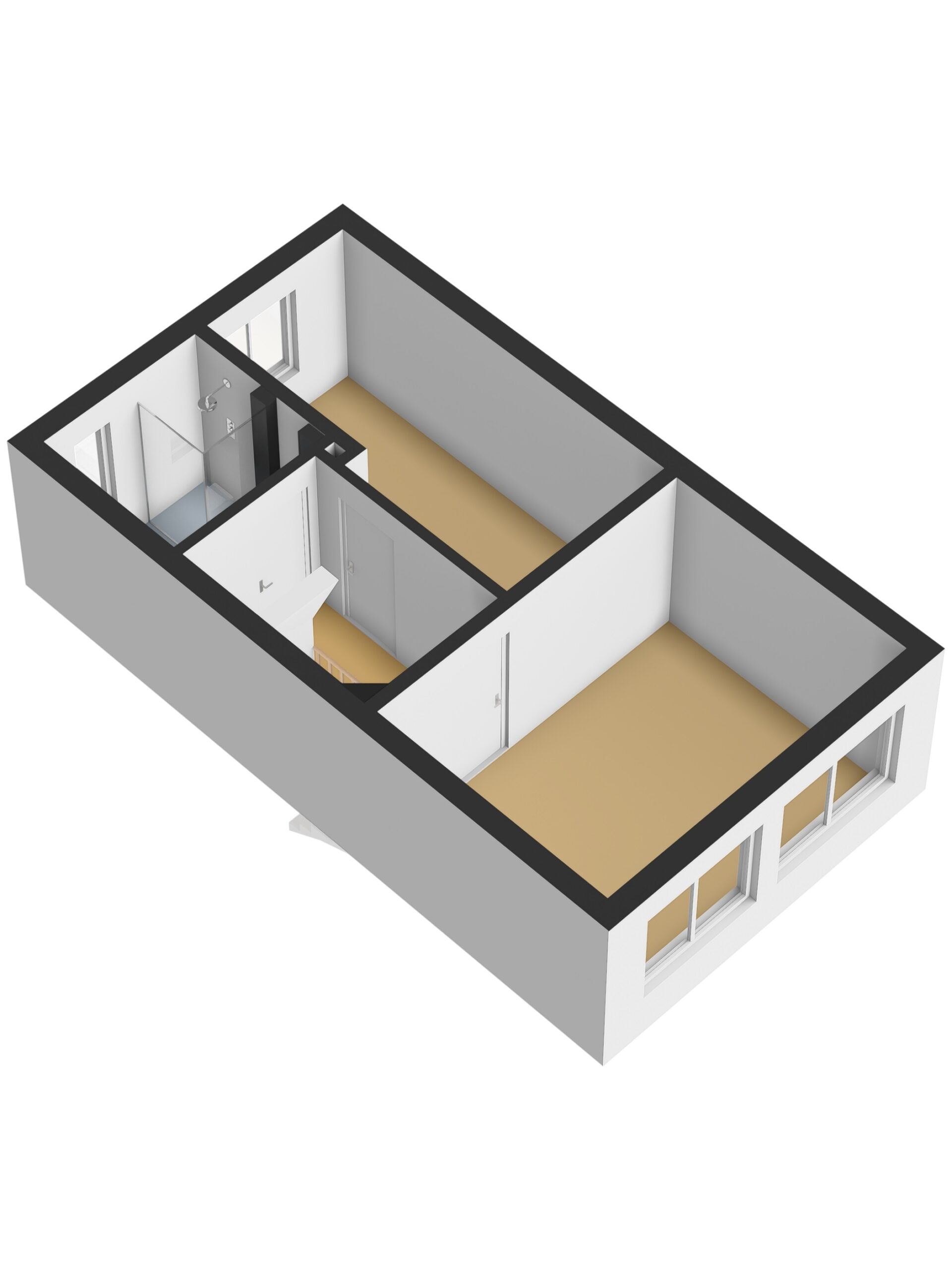 De eerste slaapkamer is gelegen aan de voorzijde van de woning en beschikt over een groot raam met uitzicht op de straat. Aan de voorzijde bevindt zich tevens de badkamer, welke is voorzien van een inloopdouche, een tweede toilet en een wastafelmeubel.
