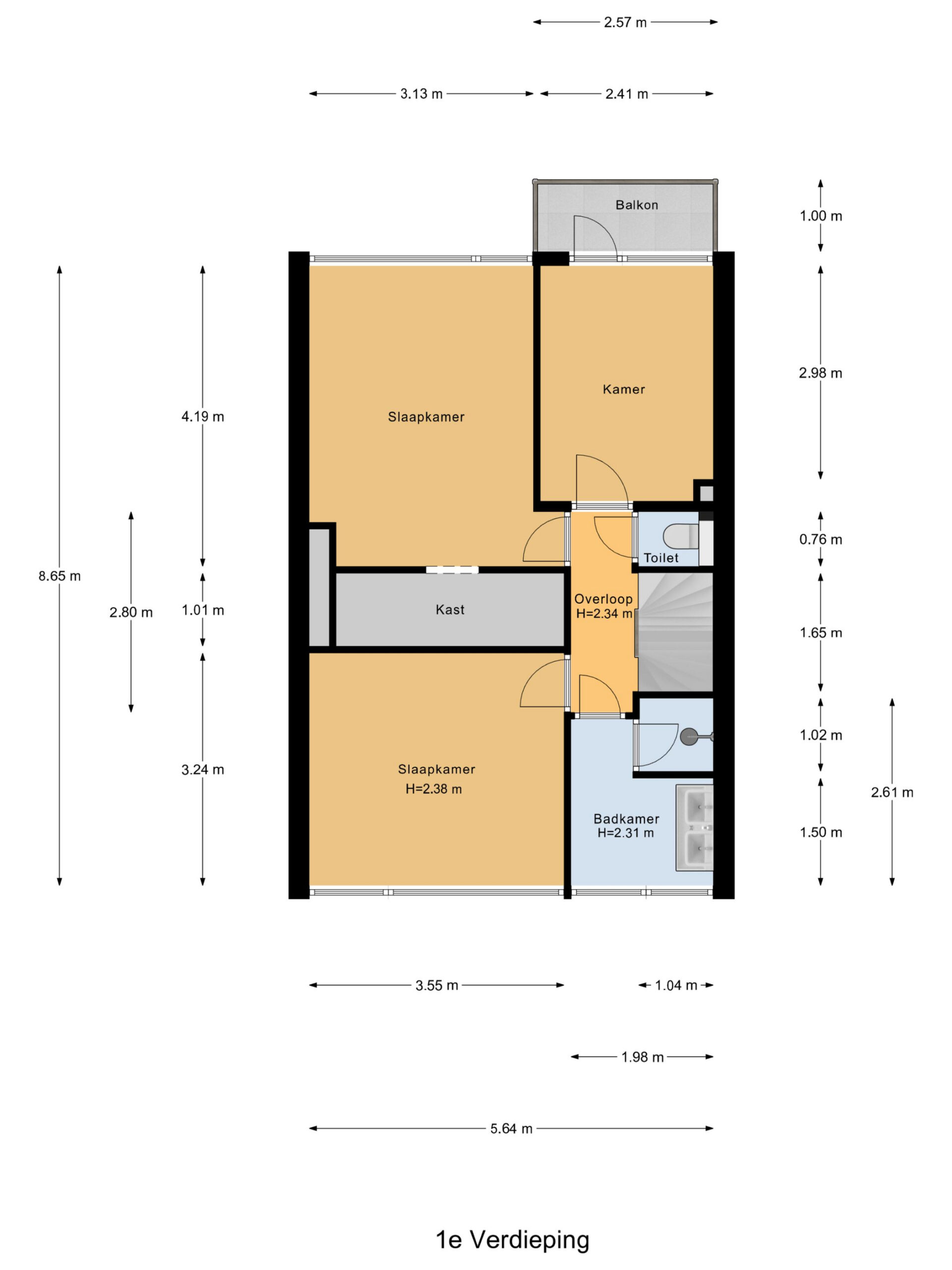 De overloop geeft toegang tot 3 slaapkamers en de moderne badkamer. Aan de achterzijde bevindt zich de ruime hoofdslaapkamer, voorzien van een praktische inloopkast. De naastgelegen tweede slaapkamer beschikt over een deur naar het balkon. De derde slaapkamer ligt, net als de badkamer, aan de voorzijde van de woning. De badkamer (2020) is modern uitgevoerd en uitgerust met vloerverwarming, een ruime inloopdouche, een dubbel wastafelmeubel en een handdoekradiator. Tevens is er een separaat toilet (2020) aanwezig op de verdieping.