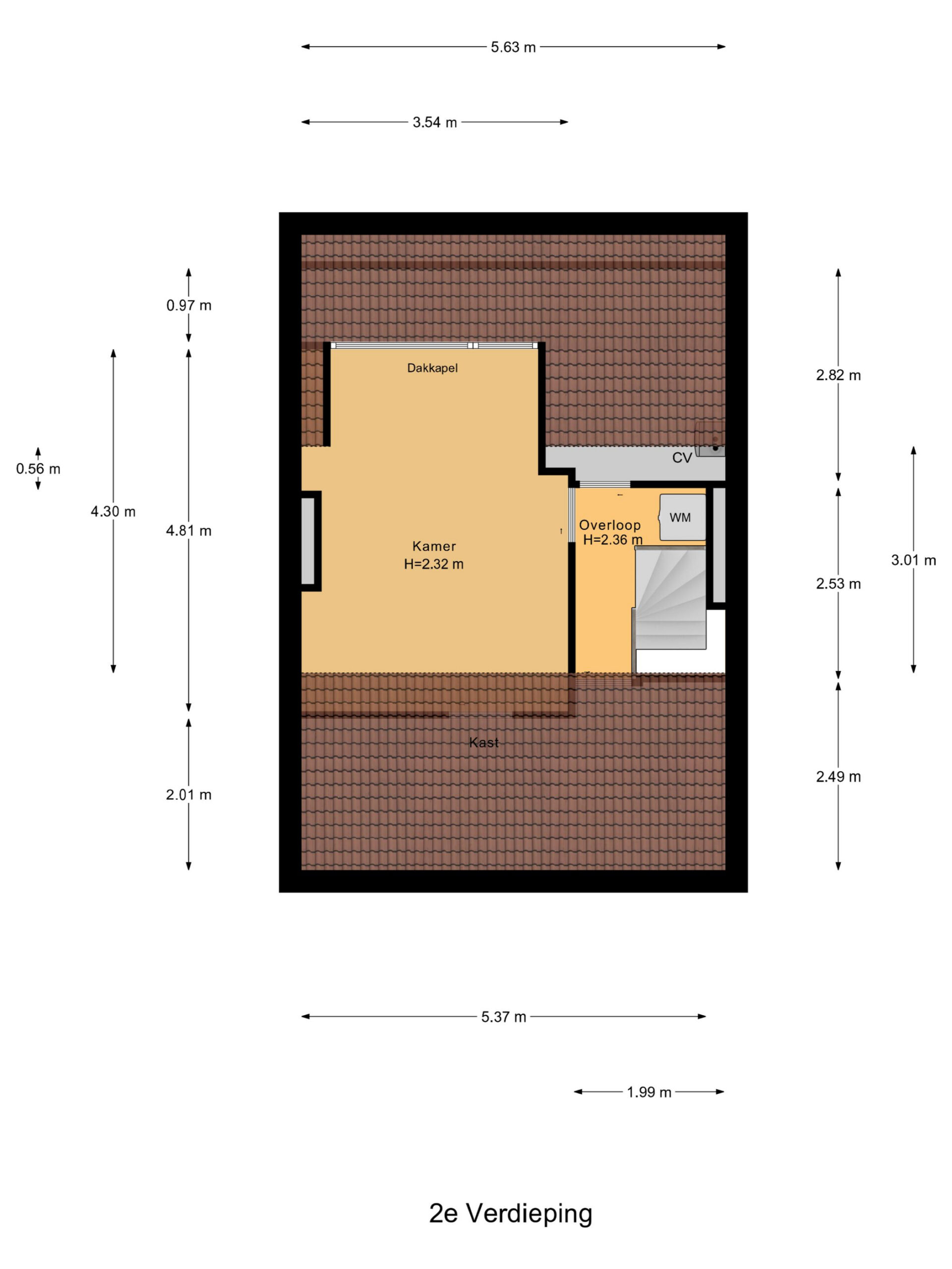 Via een vaste trap bereikt u de tweede verdieping, waar dankzij de dakkapel een lichte en volwaardige vierde slaapkamer is gerealiseerd. Op de voorzolder bevinden zich de opstelplaats van de cv-ketel en de aansluiting voor de wasmachine.