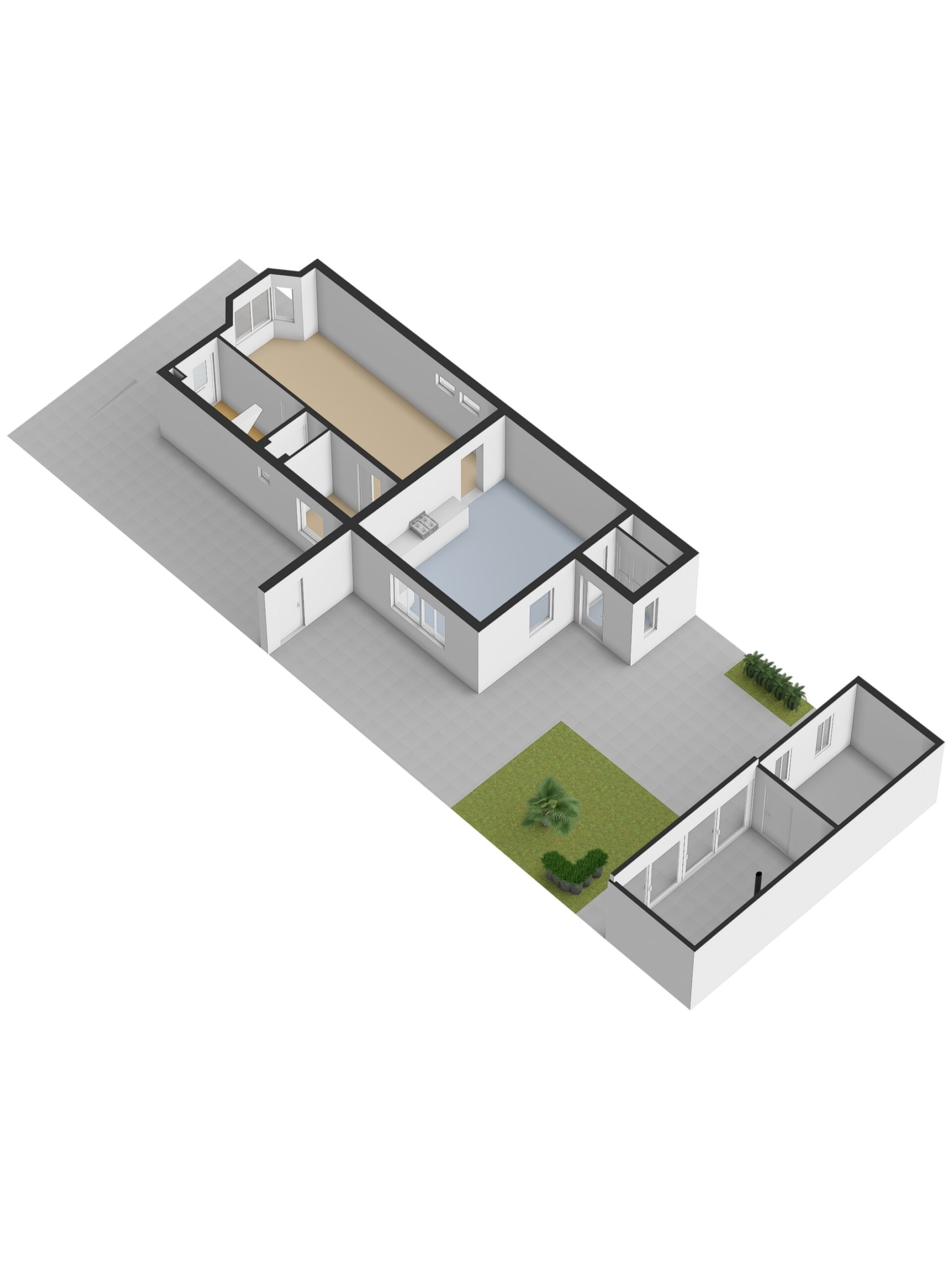Aansluitend bevindt zich aan de zijkant een extra kamer. Deze ruimte leent zich uitstekend als werkkamer, speelkamer of hobbyruimte en beschikt over een prettig raam met karakteristiek bovenlicht.