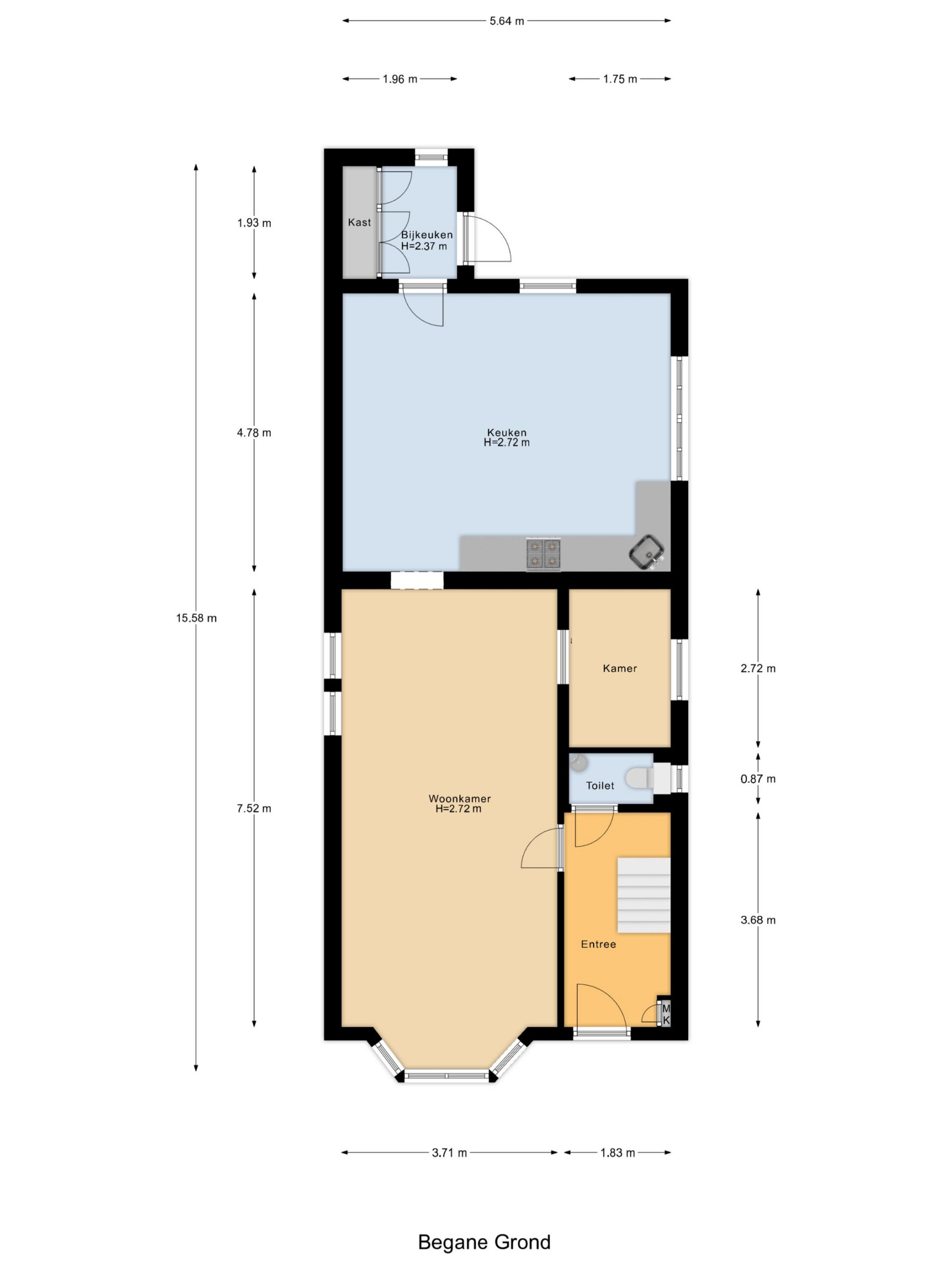 Via de keuken bereikt u de bijkeuken. Deze ruimte beschikt over een vaste kastenwand, extra bergruimte en een achterdeur naar de tuin.